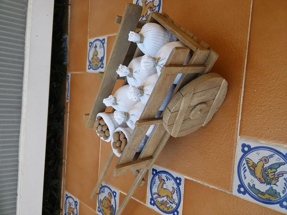 CARRO CON SACOS DE PATATAS-Para figuras de 16 a 18 cm, realizado en madera, largo total 37cm, altura 11`5 y ancho total 12 cm. PRECIO 18 euros