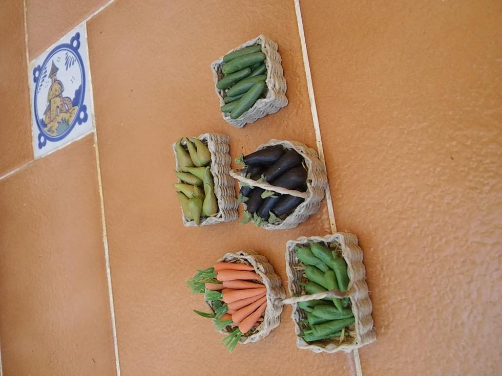 LOTE 5 CESTOS DE FRUTA Y VERDURAS- Para figuras de 11 a 13 cm. PRECIO 7 euros
