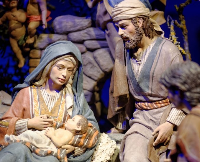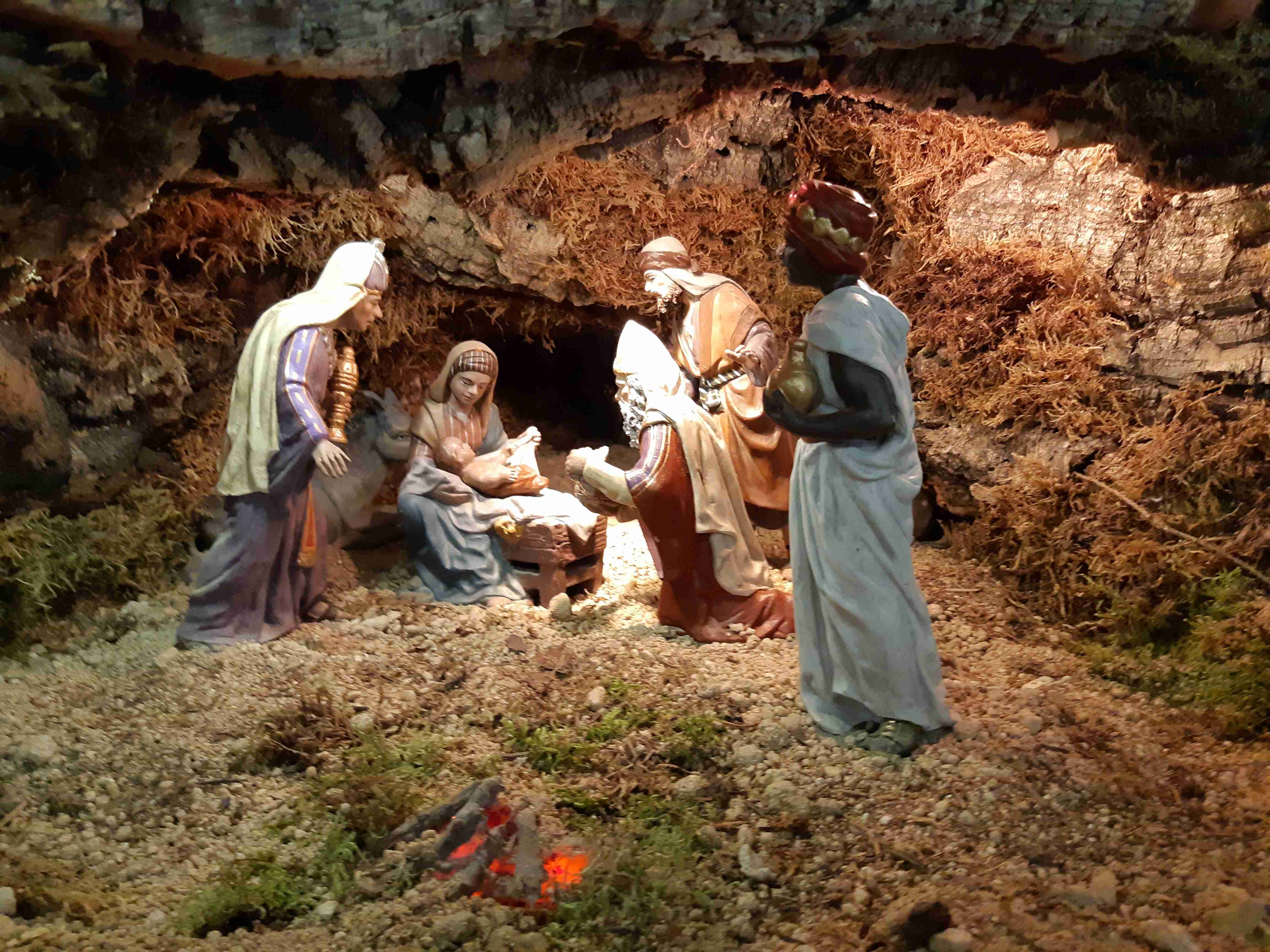 Bonito y tradicional belén en la Iglesia de San Miguel en Madrid con figuras (de las primeras...) de Mayo.