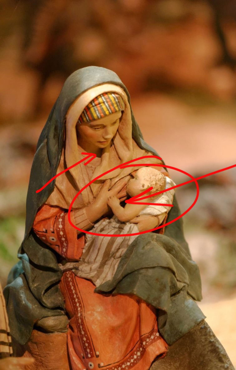 Con detalles interesantes como ésta imagen, nacimiento lógicamente en 1 plano y al fondo en la perspectiva de la casa-cueva la huida a Egipto solapada...