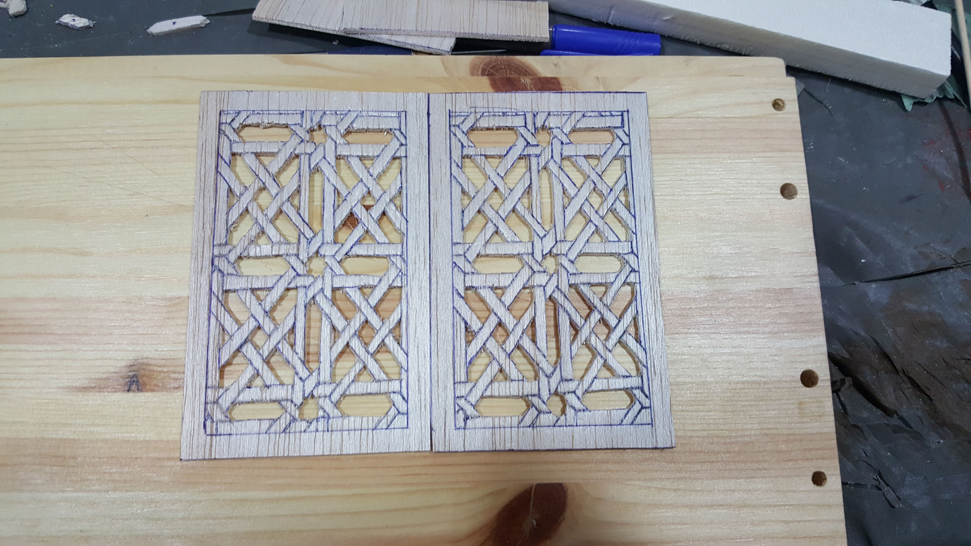 Me he decidido a poner este post pues por más que buscaba por el foro y por todas partes información sobre cómo fabricarlas no encontré nada... Y tras algunas prácticas, salió justamente lo que quería, una celosía árabe. Os cuento: