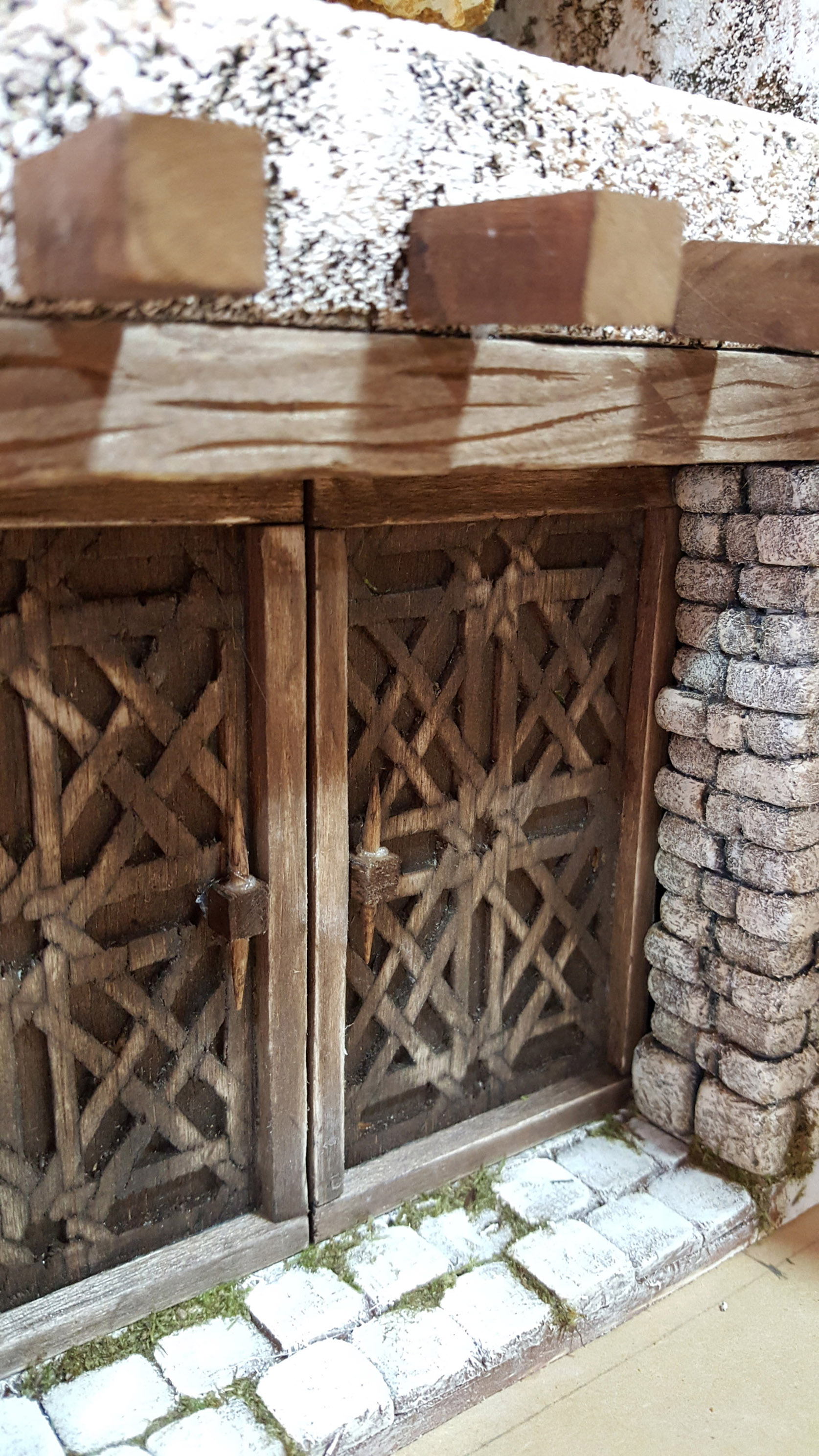 Todo empieza en Navidades del 2014, cuando visito el Belén del Círculo Mercantil e Industrial de Sevilla, del mismísimo Silvio Torilo, esa gran persona y belenista. Imagino que todas aquellas personas que rondan por el foro que sean de mi querida Sevilla, sabrán bien de qué hablo. Y a los que no sean de por aqui y no hayan visitado dicho belén, os invito a que lo hagáis, porque, para mi, sería una visita obligada que nadie debería perderse, sinceramente. Bien... Silvio y sus "artistas" nos hacen cada año volver a a aquella época, a aquel insólito y desconocido mundo del que muy poco se sabe. Ese año no iba a ser menos, cómo no. Y me topo frente a frente con una casa... Pero no una casa cualquiera, no, de esas que te dejan sin aliento, que te hacen quedarte parado unos minutos observando esa obra de arte, de esas que mires donde mires tiene algo muy pero que muy bonito. Y alli estaba aquello, en una puerta, una celosía árabe, en una ventana, otra y otra. Me habían encantado, iban a ser mi próximo reto. Y tras varias llamadas, búsquedas por internet y alguna que otra cosa más, hoy, lo he conseguido. Y, sí, es cierto, las mías ni se acercan a las de Silvio, pero bueno, lo importante es que lo hemos intentado y, por lo menos, ha salido algo, a mi parecer, chulo. Y bueno, no me enrollo más y voy con la explicación, con un pequeño Paso a Paso.