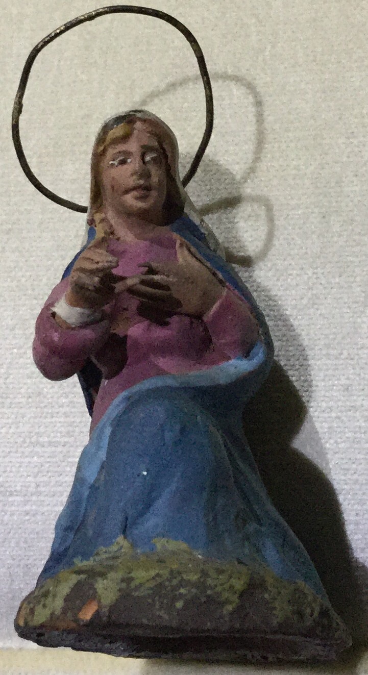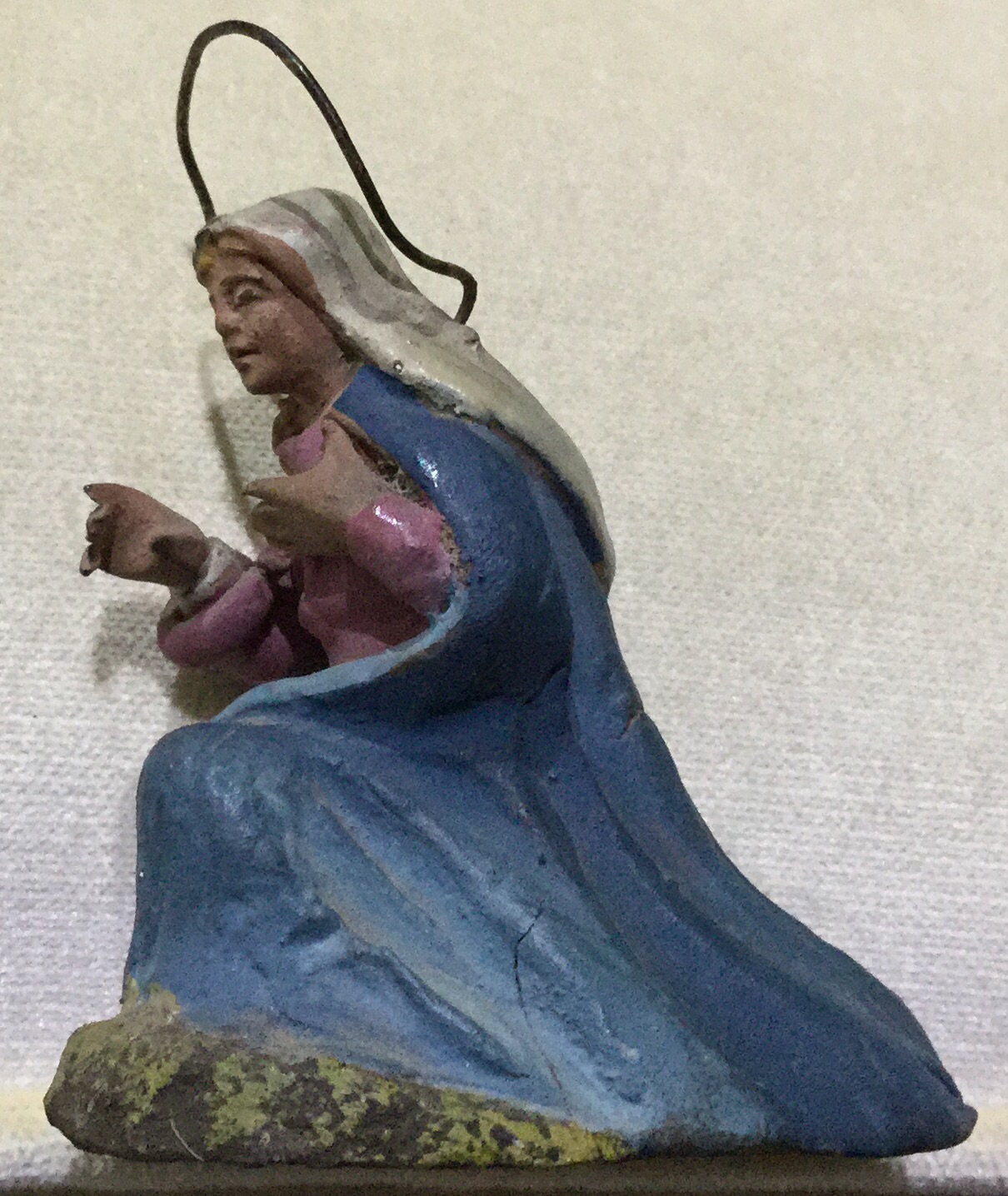 Buscando en el foro y concretamente en el hilo de Jiménez Rada, aunque no tiene el sello característico de este autor (puede ser por el pequeño tamaño), si encontré algunas aspectos comunes como el modelado de manos, el remangado de las mangas de la vestimenta típica en éste y la policromia.