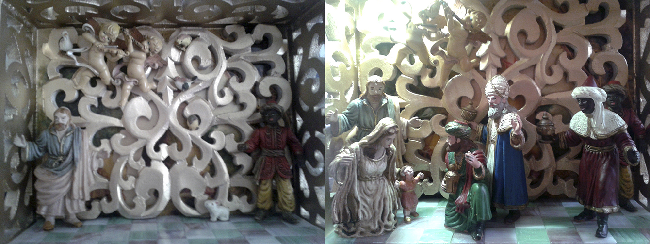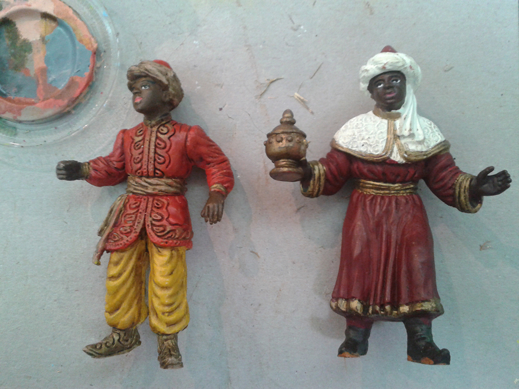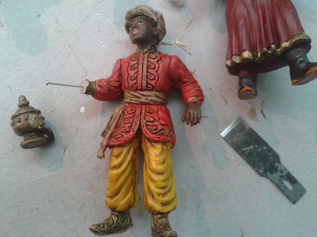 A parte del fondo, el otro cambio fue modificar las figuras originales del rey Baltasar y el paje, sobre todo por dar más movimiento a la escena y no fueran tan repetitivas las posiciones de los tres reyes.