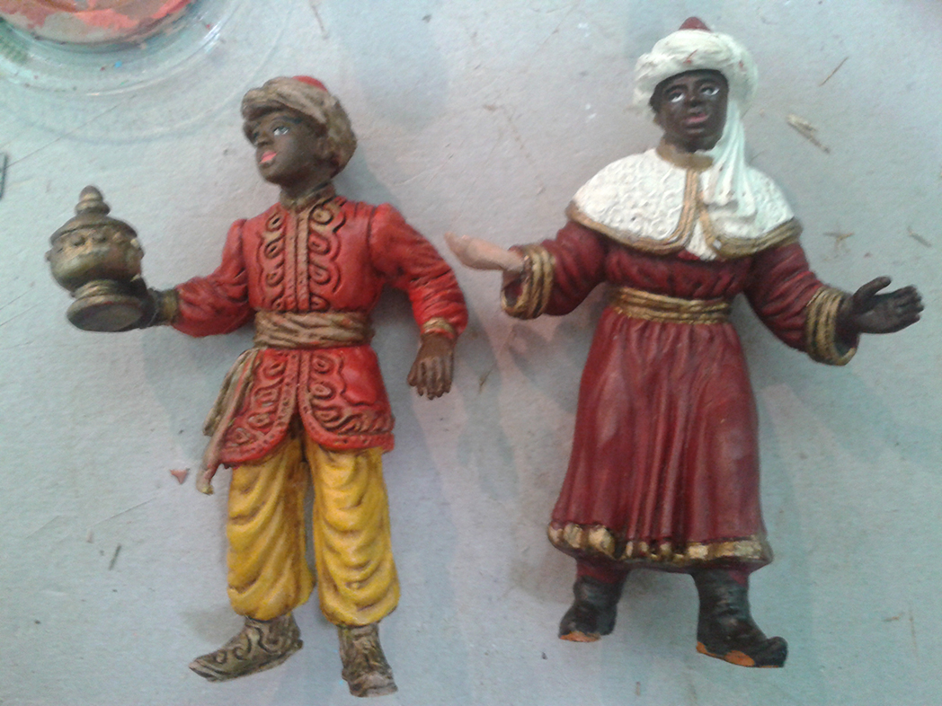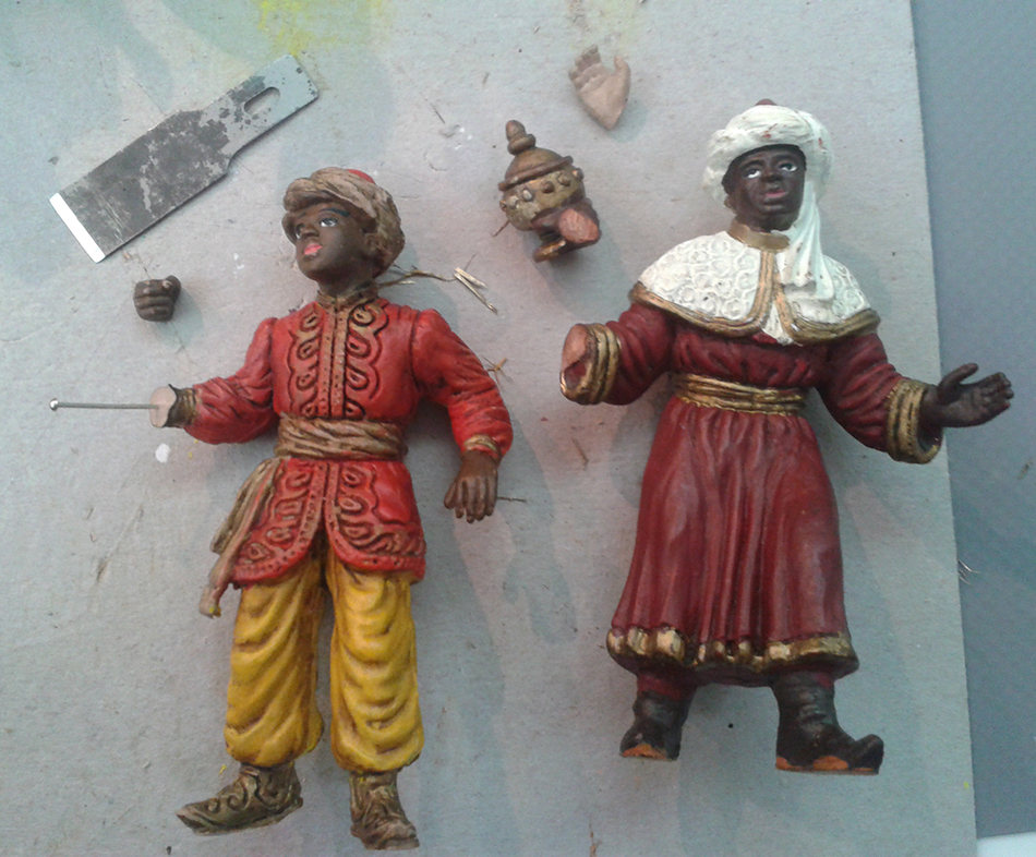 A todas las figuras les di un repaso de pintura y a las que estaban enteladas como el rey Melchor, la Virgen o San Jose más a fondo.