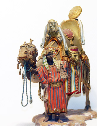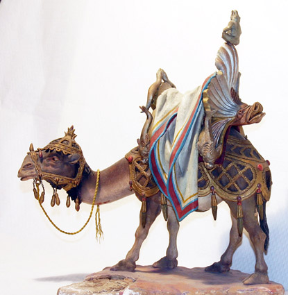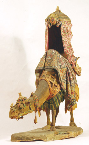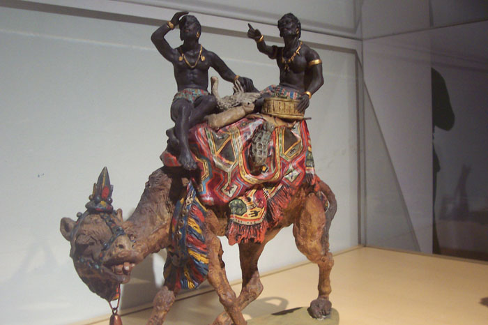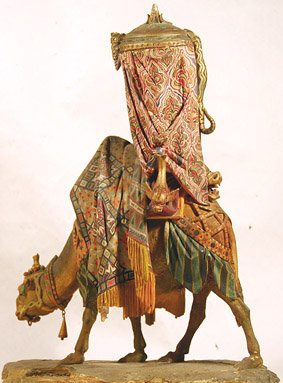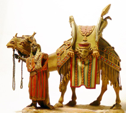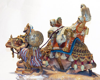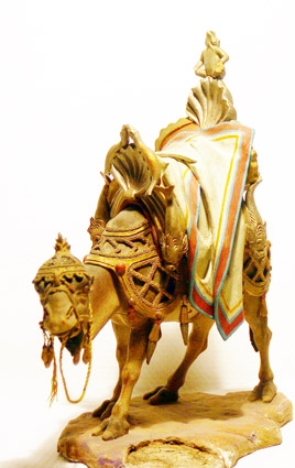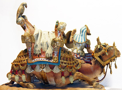 Sus figuras tienen gran movimiento y fastuosidad orientalizante.
