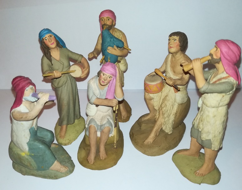 Aparte de estos también se encuentran representados otros con varios instrumentos, como el que toca la pandereta, el violín o la guitarra, según como sean de populares en un lugar o en otro. En Nápoles era casi obligada la escena de los mendigosciegos tocando música, así como la figura del guitarrista. Las figuras catalanas casi nunca reproducen el que toca la guitarra, porque es un instrumento de muy poca tradición en este país. En Murcia, a pesar de que allí es muy popular, tampoco se representa con demasiada frecuencia, seguramente por la influencia catalana.