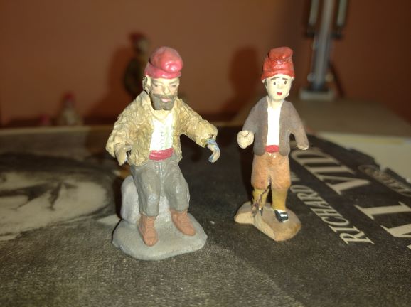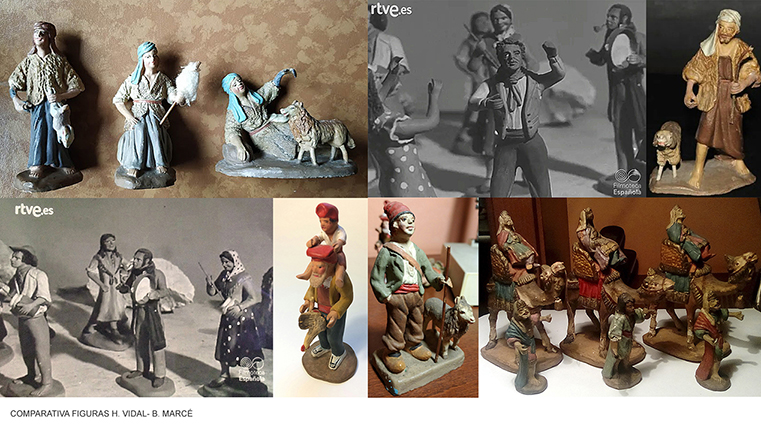 Todos los grandes y no tan grandes artesanos figuraires, se sirvieron unos de los otros. La mayoría de las veces sin consentimiento, otras por adquisición de moldes, copia descarada o apretada consentida. Los Vidal no fueron excepcion. Su producción de creación propia fué muy notable, pero también usaron moldes de otros o se apropiaron de la obra de terceros, como es el caso -consentido- de Marcé, que les vendia obra sin policromar y los Vidal pintaban y firmaban. Hablamos de una época donde el figuraire era mero productor y se debia al mercado y a las ventas para sobrevivir. El mismisimo Martí Castells, sin necesidad de hacerlo, ya que su habilidad era más que contrastada, en alguna ocasión hizo moldes de figuras de animales, a partir de figuras de latón compradas en los encantes. Esto no desmerece ni una brizna su obra, pero explica el hecho que pretendo explicar.