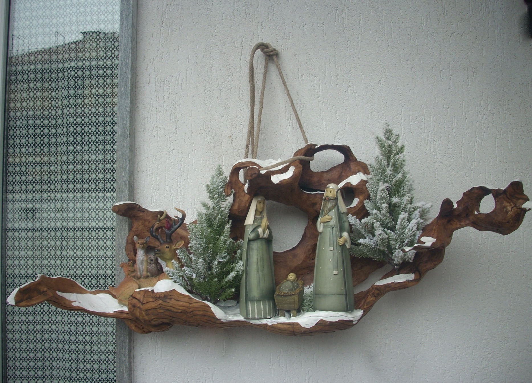 Renza_Aimone.jpg (250KB - 166 descargas)Renza tiene otras obras que entran perfectamente en esta "categoría" de "Nuevos lenguajes", en este caso por el uso de fragmentos de troncos de árbol como soporte, y la disposición de los elementos del Belén en estos escenarios: