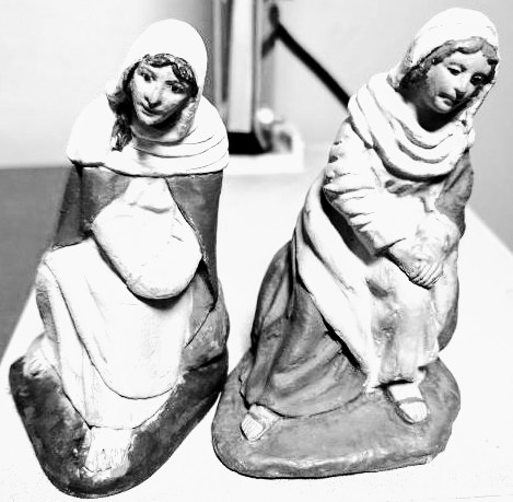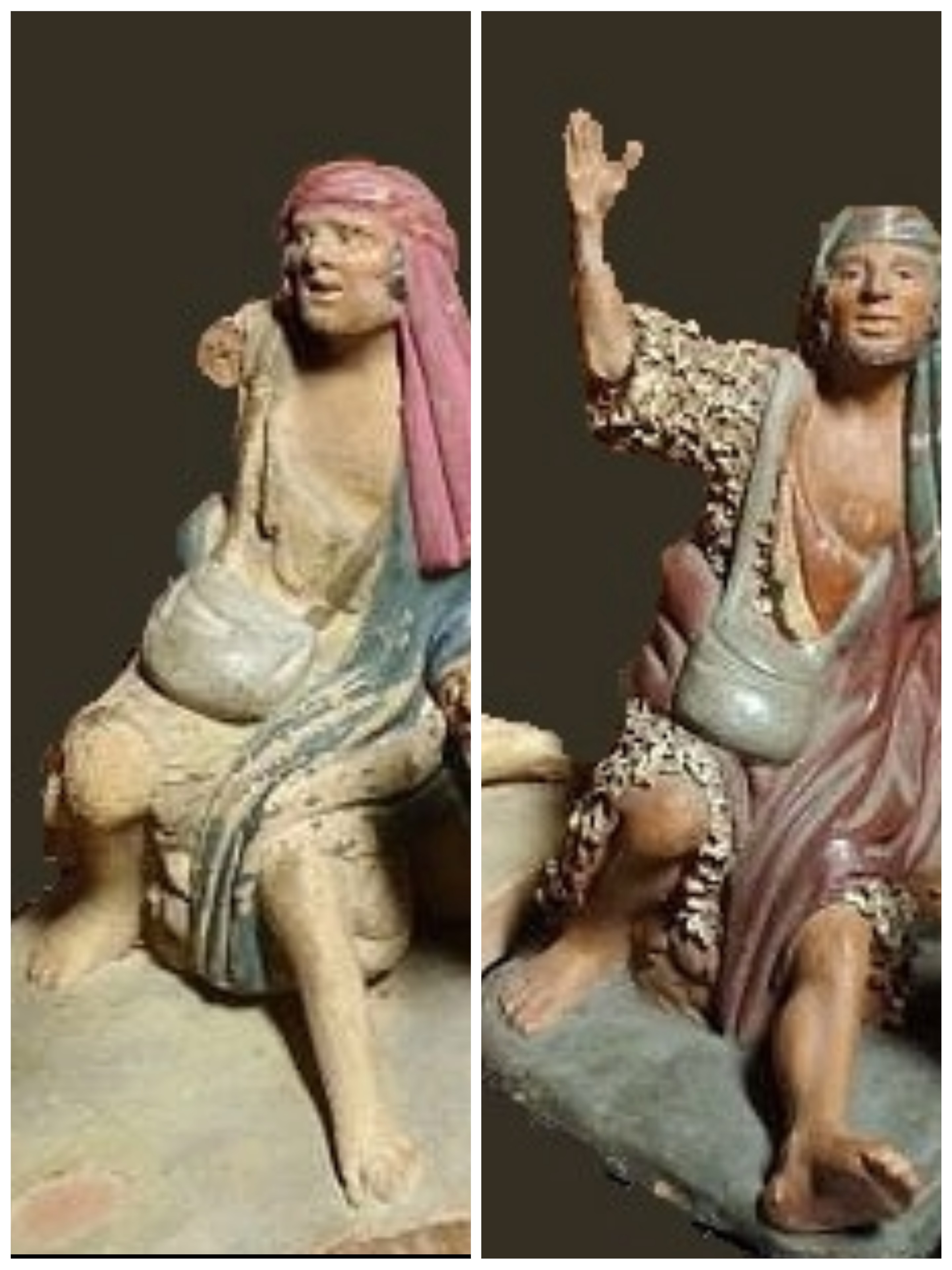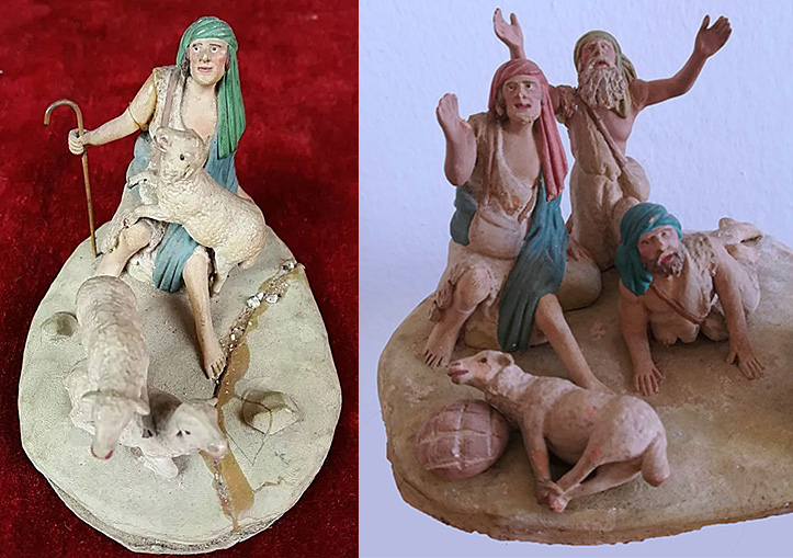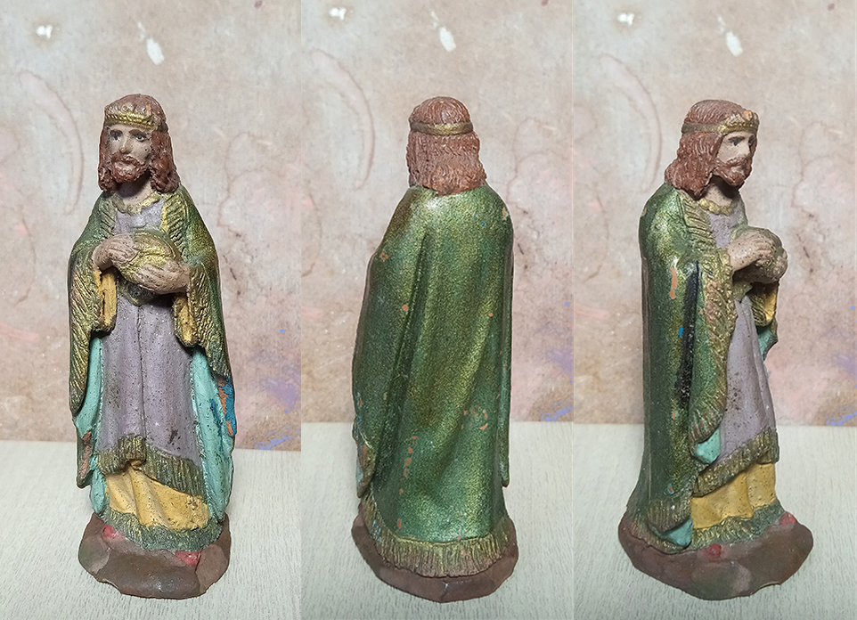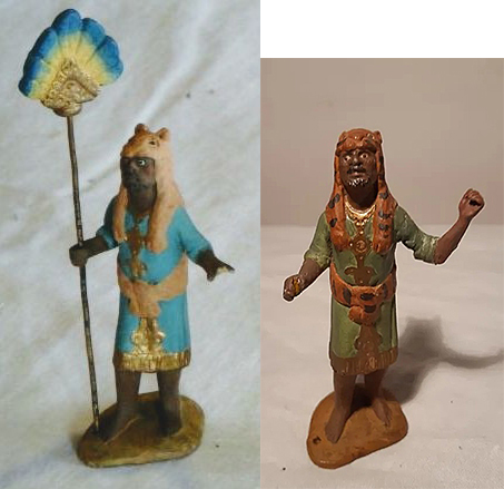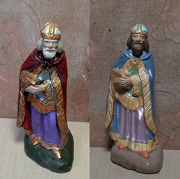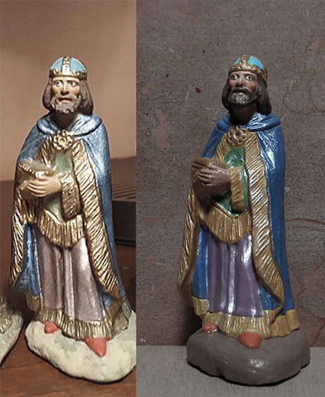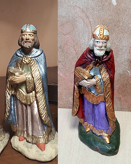 Comparativas de las figuras de Gaspar (izquierda: molde modificado y repintado como Melchor; derecha: molde del original)