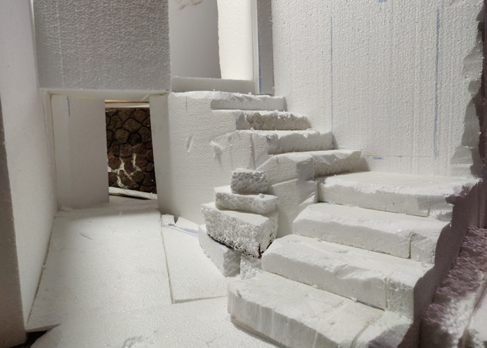 En la foto (A3.jpg) ¿Das por terminado el pintado de la mampostería? Me imagino que no, pero me he dado la libertad de mostrarte un gif animado para que veas, si es que no, la diferencia que hay si le das unos toque muy sutiles de colores distintos en la mampostería, recordando siempre que los colores intensos, saturados van siempre en el primer plano, termino, y a medida que te vas adentrando en los diferentes planos los vas agrisando y enfriando (azul), has de meterle atmósfera, ambiente.