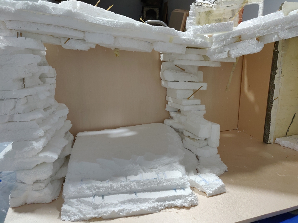 ¿Has hecho algún dibujo, croquis, esbozo, croquis previo, o vas improvisando sobre la marcha? Lo pregunto porque veo que utilizas las figuras del nacimiento de 36 cm en dos lugares distintos, en la foto (25.jpg) y en la (c1.jpg). ¿Estabas pensando colocarlas en un principio en la (25.jpg) y otro día decidiste colocarlo en un abrigo rocoso, una semi-cueva? Me encanta como has construido este portal, te desenvuelves de maravilla con los distintos tipos de porex.