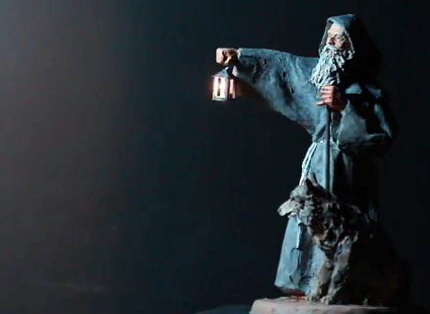 "...¡El Wanderer de Sigfrido!...La figura es todo ropa y potencia, un poco al estilo de los "silvanos" (y por ese concepto lo introduciría en el pesebre), con la salvedad (que no se ve) que la figura ha de llevar un parche en un ojo y que el bastón es una lanza (llena de runas, pero eso se puede prescindir). Unos cuervos al lado (Hugin "pensamiento" y Munin "memoria") le quedan de lujo (esos los busco yo) y ya, acompañarlo del nibelungo Mime (ahora sería un "acondroplásico"y Juego de Tronos los ha puesto de moda, ya daría el toque final."...