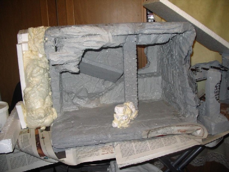 Hola Ana,pués sí que es un engorro hacerlo en una habitación,menos mal que esta la usaba solo para la plancha,costura y el ordenador que si llega a ser la de dormir estaría todo el año sin pegar ojo.............je,je,je.Ahora lo que tengo atrasado es lo de la plancha y andamos tol día " arrugadicos".........ja,ja,ja,ja.En cuanto a lo del cemento cola lo uso para casi todo,aunque tengo otras clases de pegamento como el de madera o masillas,pero el cemento cola me sirve para pegar el poliestireno con más fuerza,rellenar algún hueco ,y a veces también lo mezclo con la pintura para darle más consistencia ,aunque también a la pintura le echo aguaplast.En principio lo hice porque aunque compré pintura de fachadas no encontré la granulada( y anduve varias tiendas,incluido el leroy)así que me dije " la imaginación al poder " y me inventé yo el granulado.Seguramente no es tan rústico como el otro ,pero no me deja descontenta.