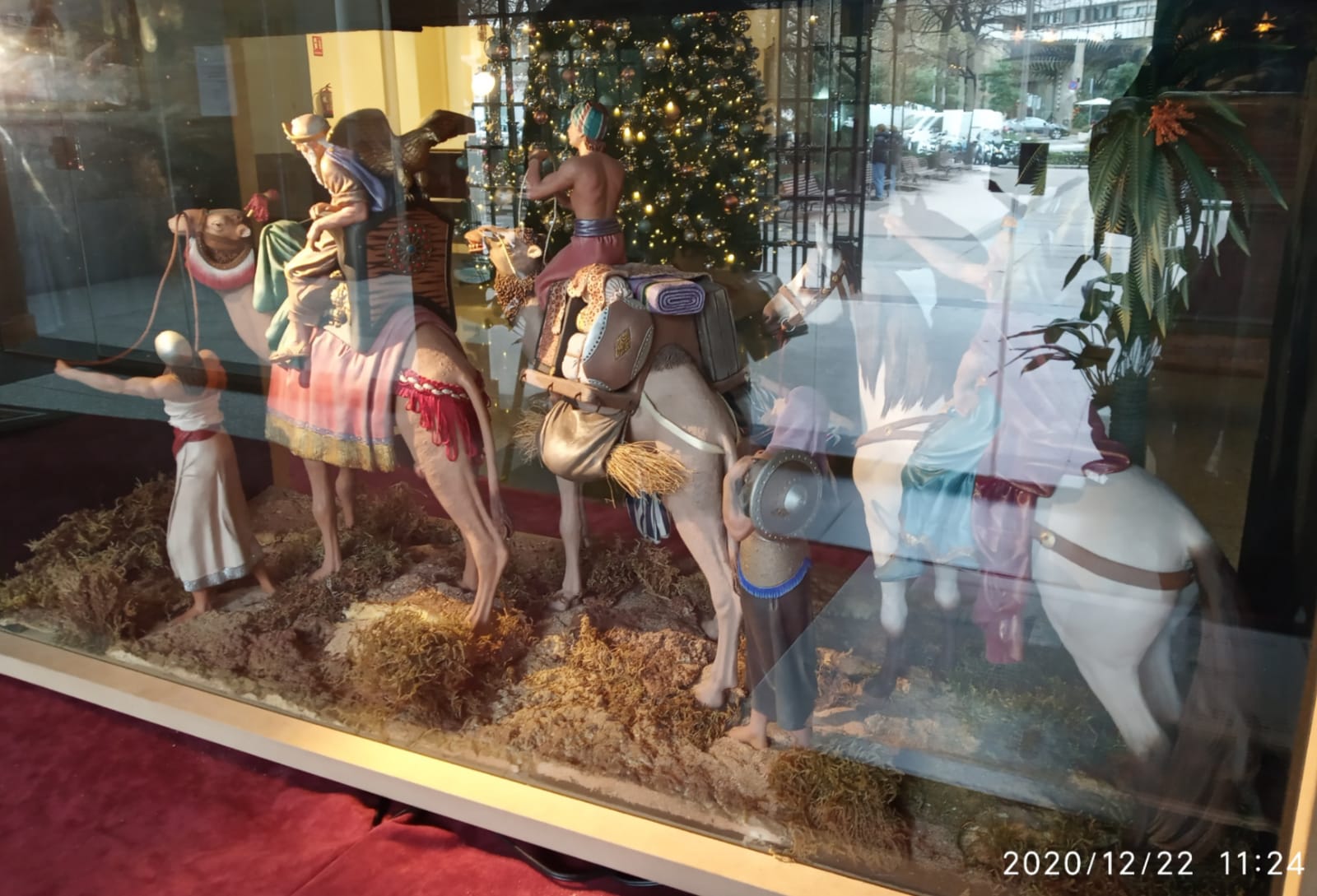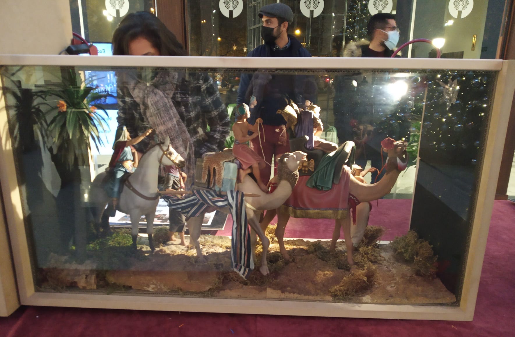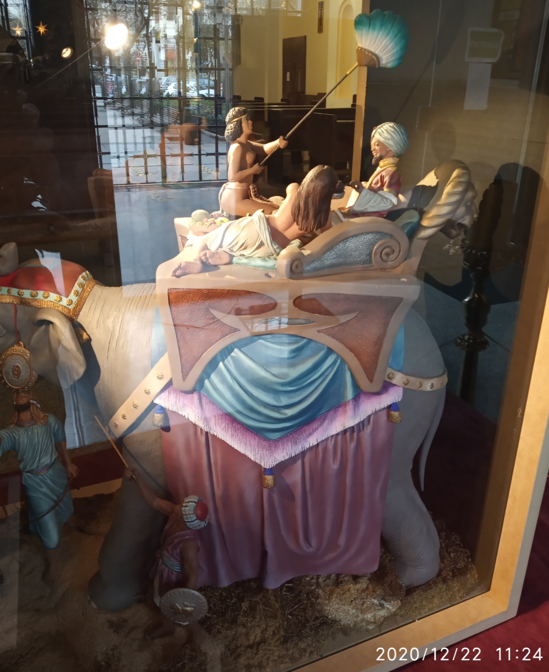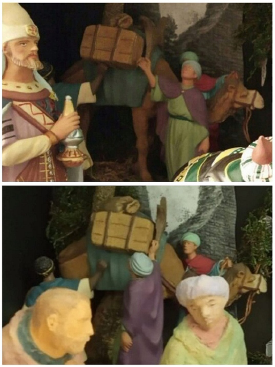 Subo imágenes diurnas de como ha quedado el montaje global en la entrada de la Iglesia de la Parroquia (lo más problemático han sido los reflejos del cristal pero necesarios para la seguridad de las figuras y belenes, se ha solventado con luces externas con mejor efecto en horas de tarde y noche...), parece que tiene buena aceptación por los parroquianos y todos los que se acercan a verlo (la mayor controversia ha sido con la figura del Rey Baltasar de Daniel José Pons por "razones" obvias...), iré subiendo algunos detalles y también fotos del montaje.