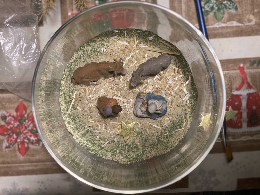Insignificante y sencillo, pero durante el Adviento ha estado vacía... cada día he ido echando un poco de heno, para preparar su llegada... y la noche de Navidad puse el Niño. Es de barro cocido, regalo de los Hermanos Focolares en Roma