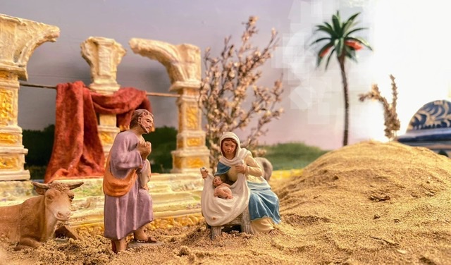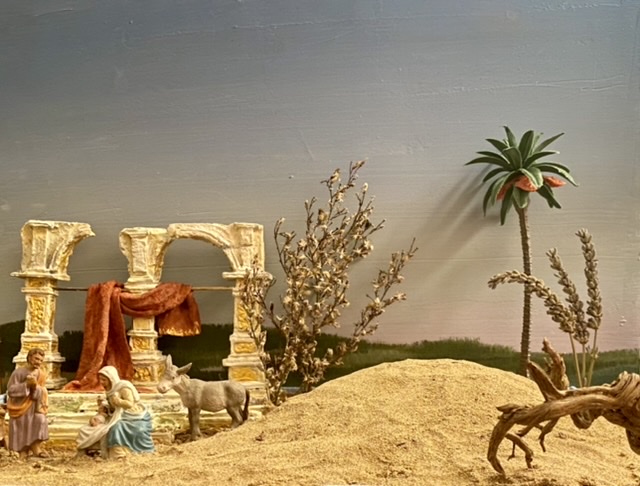 Las figuras ya las conoceis, han salido del fanal traslúcido para viajar y posarse sobre arena de la playa africana española... ahi podemos contemplar la escena sobre unas ruinas, que son ese lugar donde Dios elige para nacer, para dar vida, para ser...