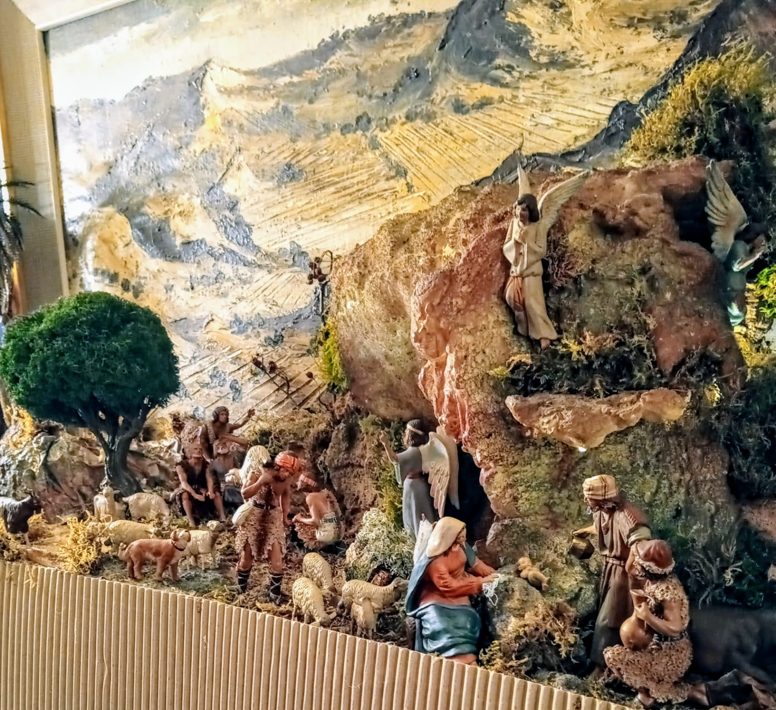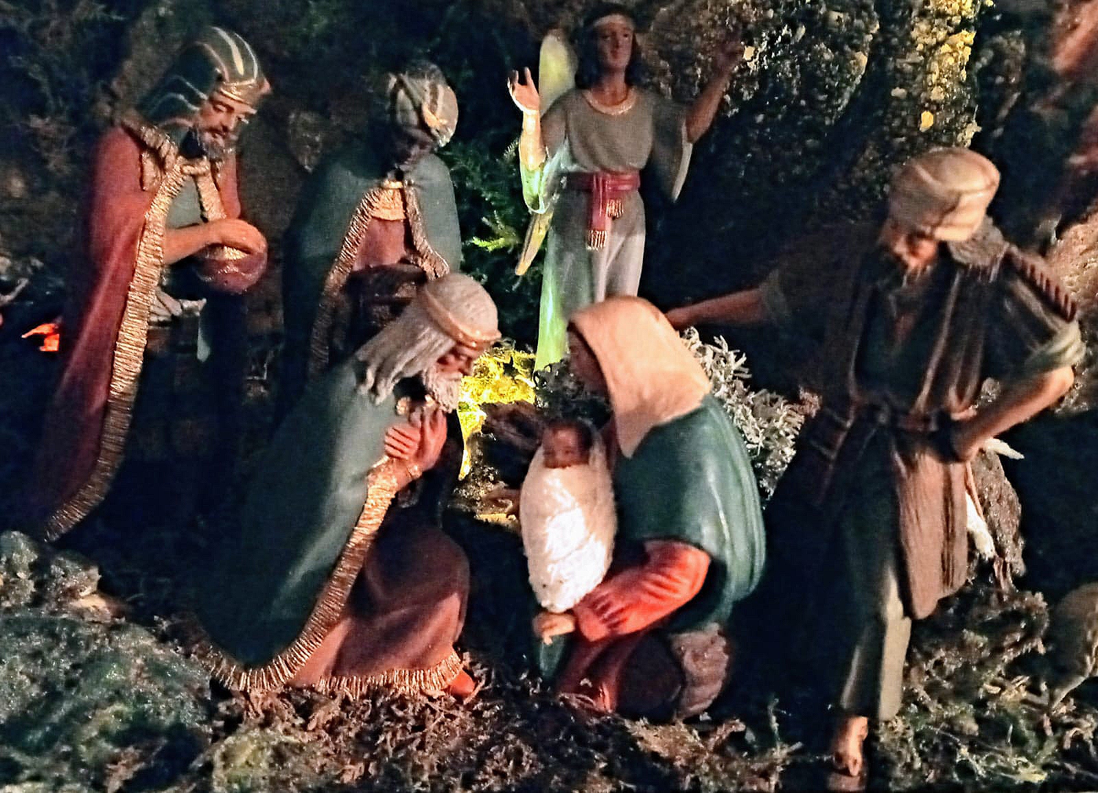 A mil pasos de la torre, a menos de un kilómetro, la escena del Nacimiento ... La tradición (vamos, el Evangelio de Lucas) nos dice que Jesús nació en un pesebre. La palabra griega es φάτνῃ , a saber, comedero de forraje , que en la tradución de la Reina Varela se emepzó a usar la palabra pesebre.