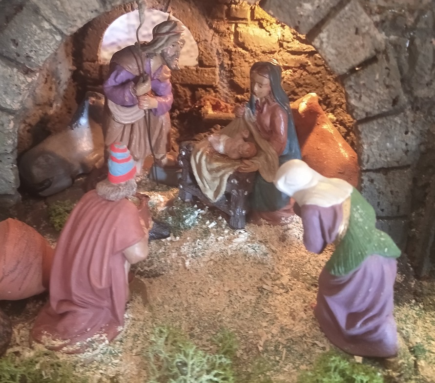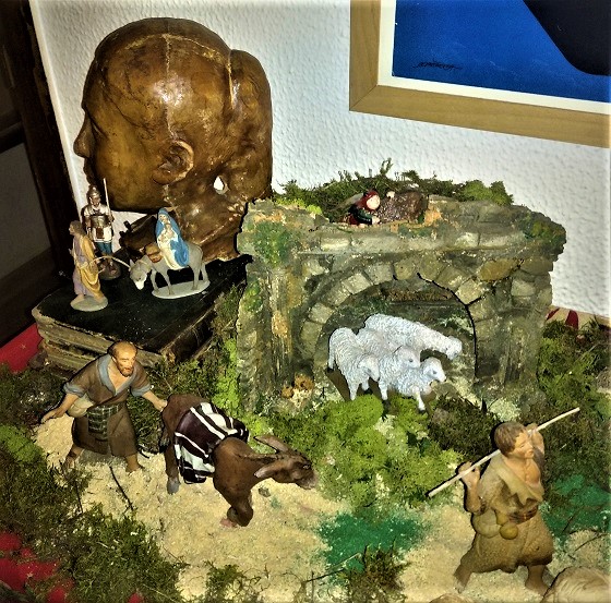 Por cierto, me gusta que el "boceto de cabeza en terracota que encontré en los encantes y me pareció bonito, de escultor bueno" (cf. Drake en este mismo hilo) , esté dando la espalda al pesebre... ¿será porque las cosas de Dios no se entienden con la cabeza y con la razón? ¿o es que invita con la mirada al que entra en la sala a que se acerque al misterio de la Navidad en casa?