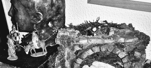 Sin escribir, seguí meditando al hilo del nacimiento... en no se que momento, como en la magia de una noche de Reyes, el paisaje de la Alcarria vuelve a ser transformado en un nuevo instante de quietud ...y el Niño está envuelto en pañales, y San José ha dejado la alcuza para contemplar al corderillo de las entrañas de María sobre la roca.. y los pastores, los del raso y la noche, los anunciados a los cuatro vientos se van acercando y dejando a los pies de la familia sus frutos y flores, sus presentes y regalos... empiezan a moverse de su espacio, a salir de sus seguridades, a dejar las redes de lo estático y ponerse en camino... porque se dijeron unos a otros... que si.. que fueran a ver al Niño entre pañales, acostado en un pesebre... y el ángel se gira, y ellos se ponen en pie... hasta llegar al misterio y volver a congelar la escena, en ese otro instante de adoración y quietud... de silencio contenido y de magia....