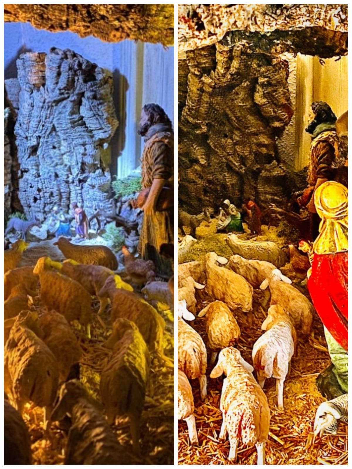 Ahora los personajes de escena están como asomados al pretil del escenario, mirando al público en un pasillo de despedida.. los que estaban junto al pozo, los que conversaban por el camino, los que contemplaban el misterio, el niño, el joven, el viejo, la nueva de última hora… todos con sus ovejas, con gallos y gallinas… allí asomados al balcón de la gruta de Belén, contemplando contigo y conmigo la escena que se divisa al fondo…