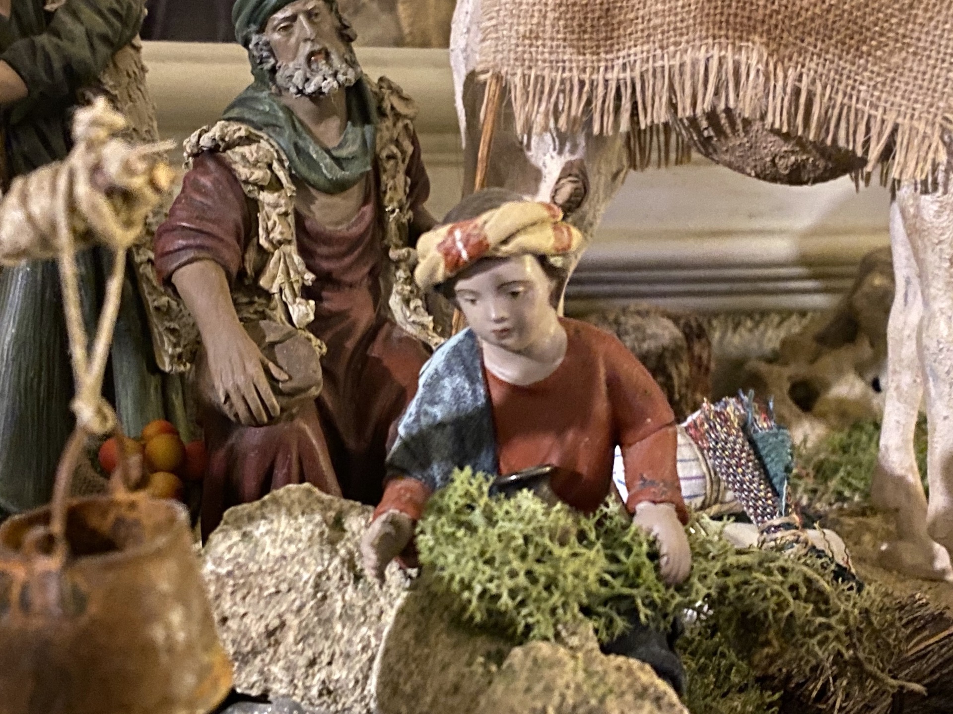 Siguiendo con esas escenas que a lo mejor están, pero son poco vistas, se me rondó por la cabeza otro instante (en Nuestro Belén 2020 (“Midgal Eder”) lo desarrollo en las escenas con figuras de Daniel José padre)… bueno, sigo, instantes de esos que se congelan en la plasticidad del Nacimiento, y que están llenos de sentido, de expresión contenida, de magia abrumadora…