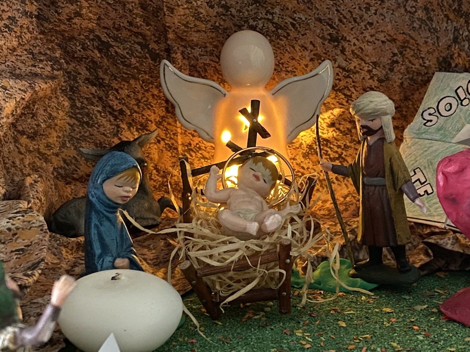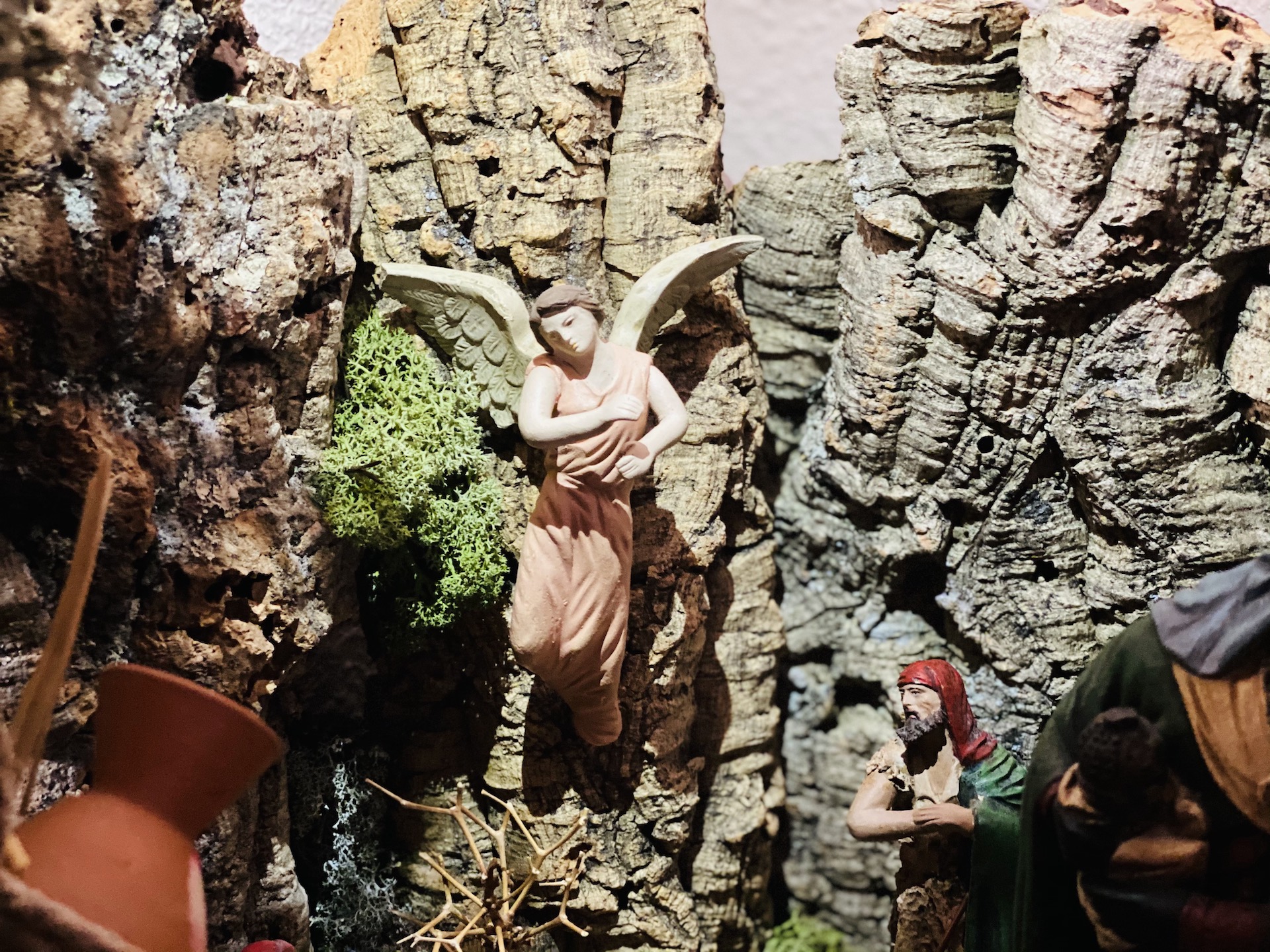 No... el ángel no se me olvida... ahí está, vigilante y expectante que te invita a mirar y entrar en la cueva de corcho bornizo, musgo y paja para hacerte tú mismo ofrenda en Belén .
