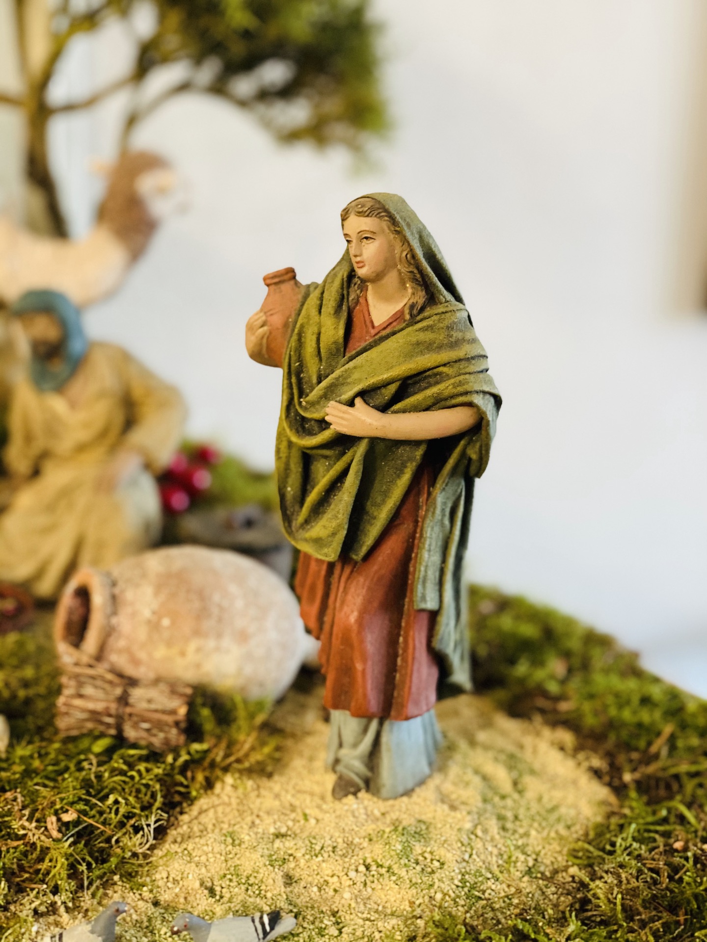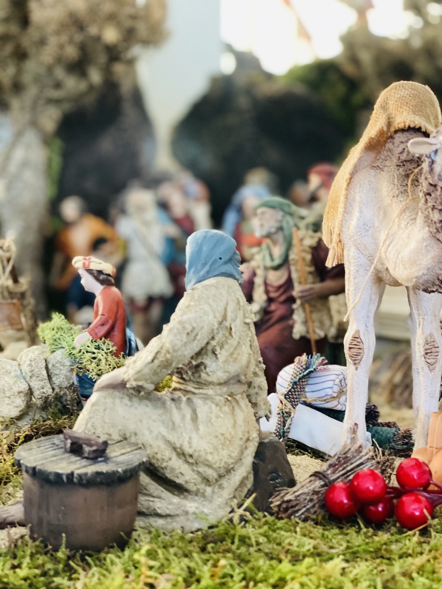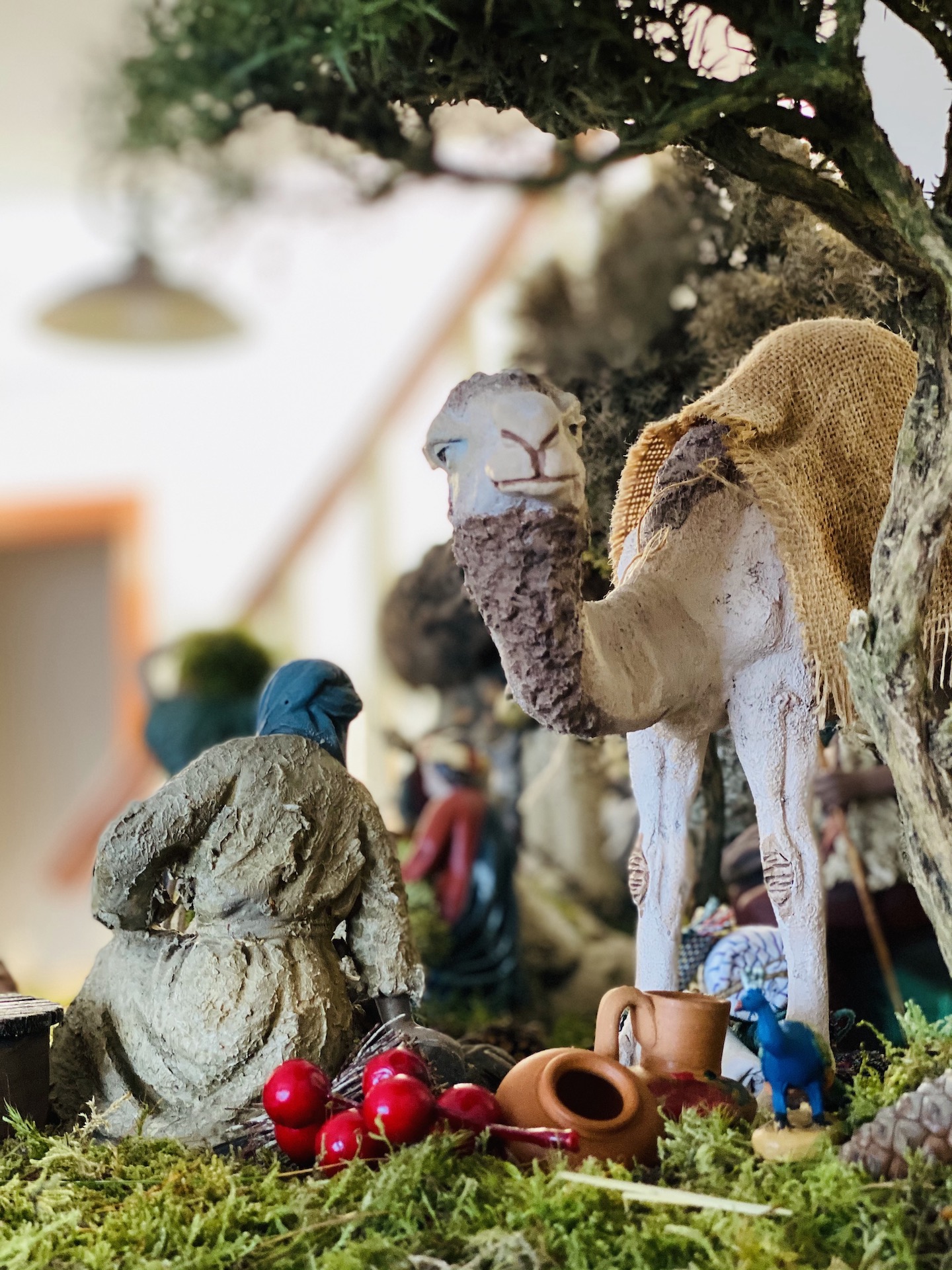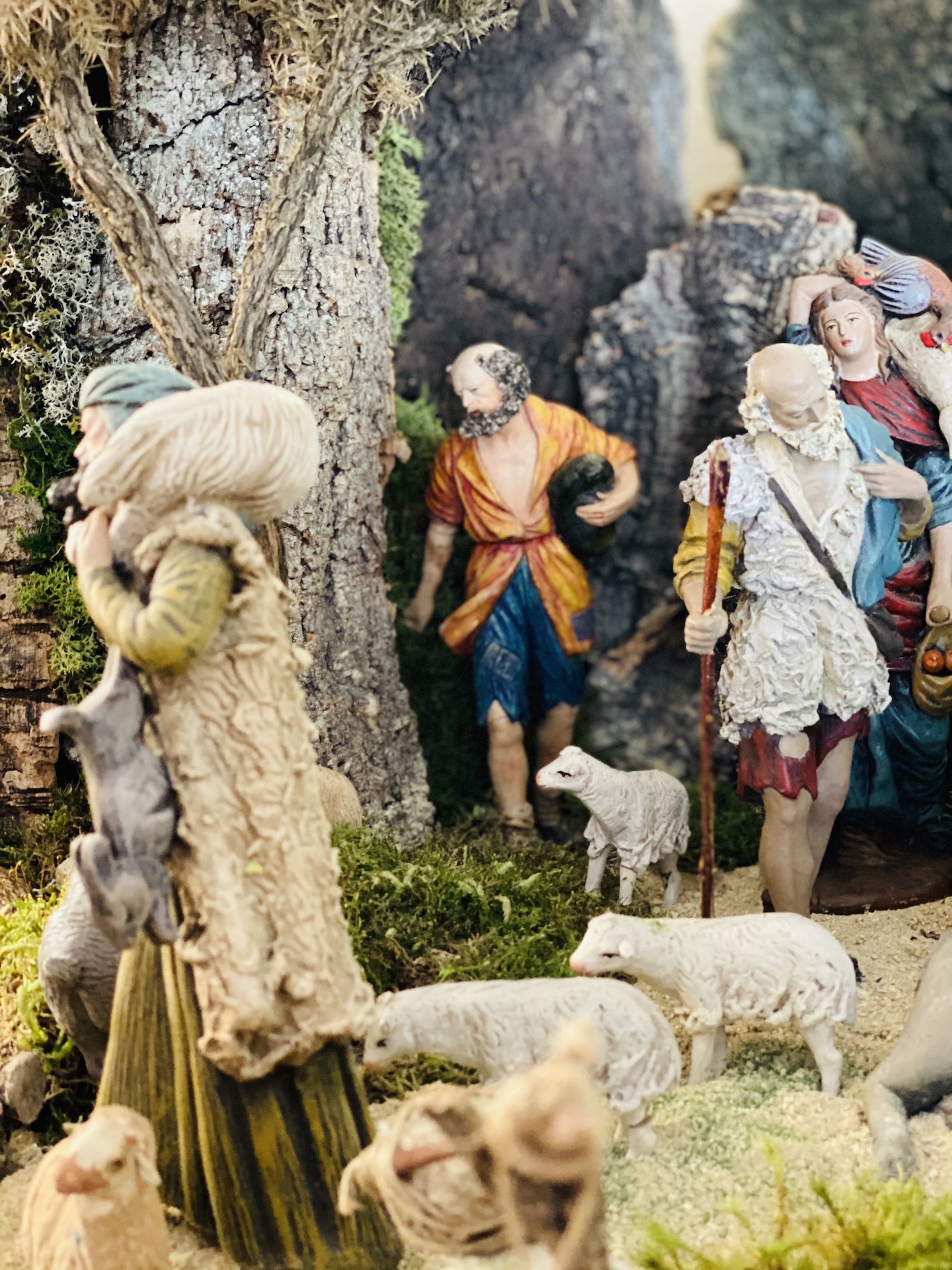 Siguiendo con esas escenas que a lo mejor están, pero son poco vistas, se me rondó por la cabeza otro instante (en Nuestro Belén 2020 (“Midgal Eder”) lo desarrollo en las escenas con figuras de Daniel José padre)… bueno, sigo, instantes de esos que se congelan en la plasticidad del Nacimiento, y que están llenos de sentido, de expresión contenida, de magia abrumadora…