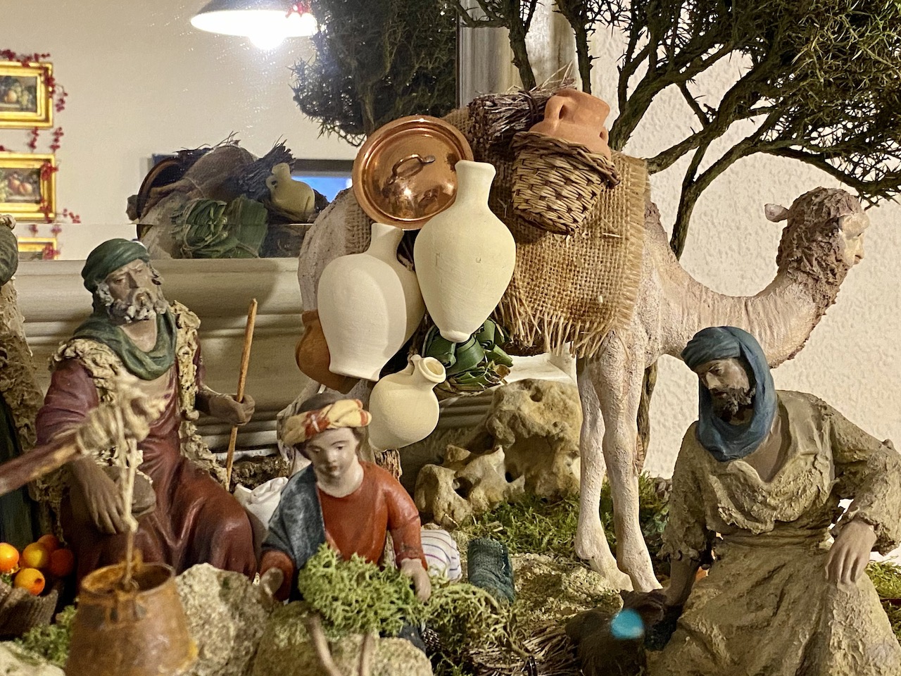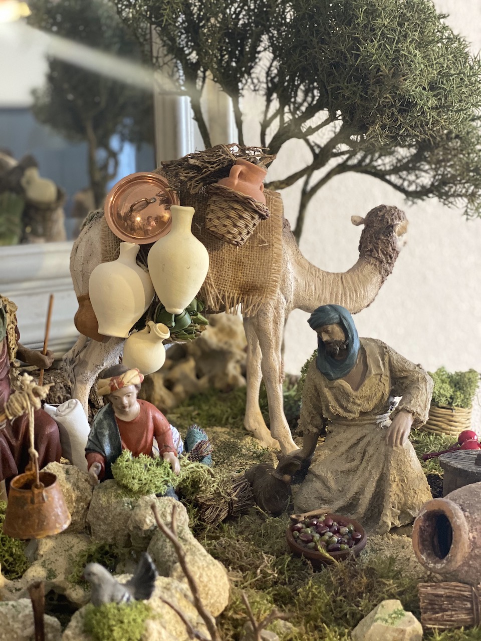 Y así ha sido... el sábado tuve la suerte de poder a salir a pasear por el centro y acercarme a un par de tiendas que en estos días apuran las horas para poder hacer en las ventas de Navidad algo más de caja, sobretodo como están las cosas... y aquí os hago la aportación de esa mañana de compras con la carga del camello de los Hermanos Cerrada, con vasijas, canastas, atillos... y para la puerta de la gruta dos ovejas de barro, también de los Hermanos Cerrada...