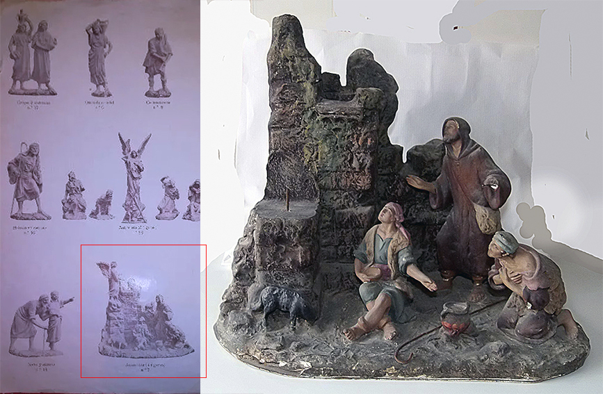 CatESC1921m.jpg (240KB - 216 descargas)Antes de proseguir con las figuras enmarcadas (en rojo) y las averiguaciones...subo un ejemplo del buen hacer y la calidad del taller (principio de siglo XX), con un grupo de la anunciación a los pastores (en catálogo, como modelo n°7 Anunciata completa ), que en otro hilo de Figuras(autoría) se llegaba a confundir con figuras de los Castells, estamos hablando de los primeros años del siglo donde el Avi Castells empezaba con taller propio(1918)...