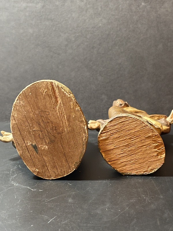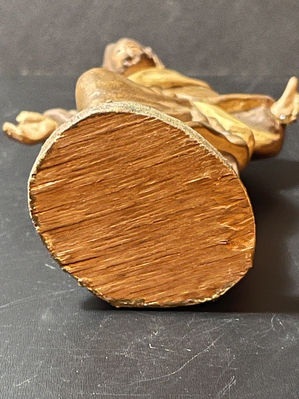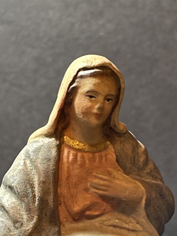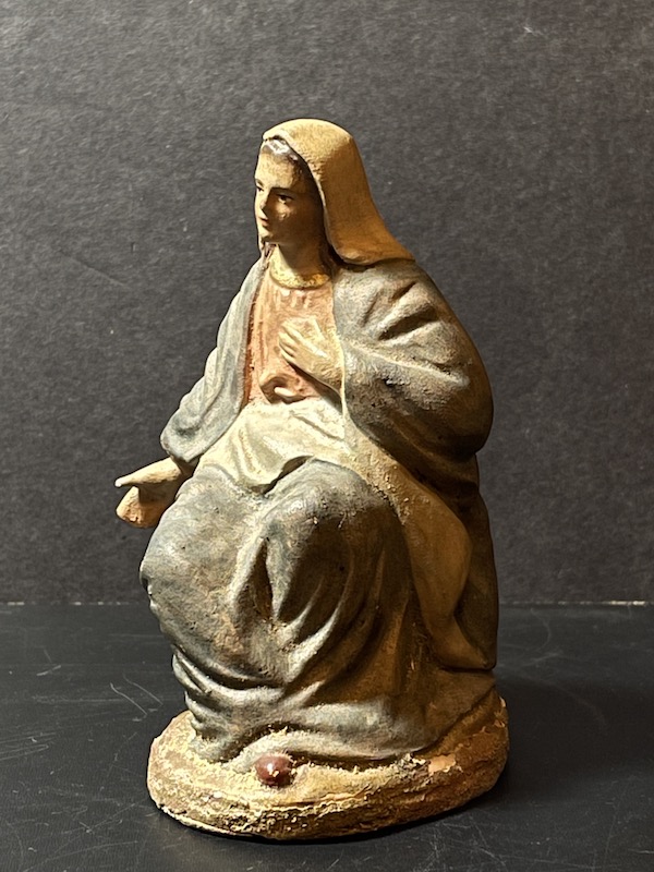 Os comparto a San José y a la Virgen ... San José con la base mide 11,5 cm y María sentada con peana 9,5cm. Son de barro, de grosor muy fino, bases de madera y huecas. Las encajo en la producción murciana... pero no puedo encajarlas en ningún autor concreto ni en ningun taller.