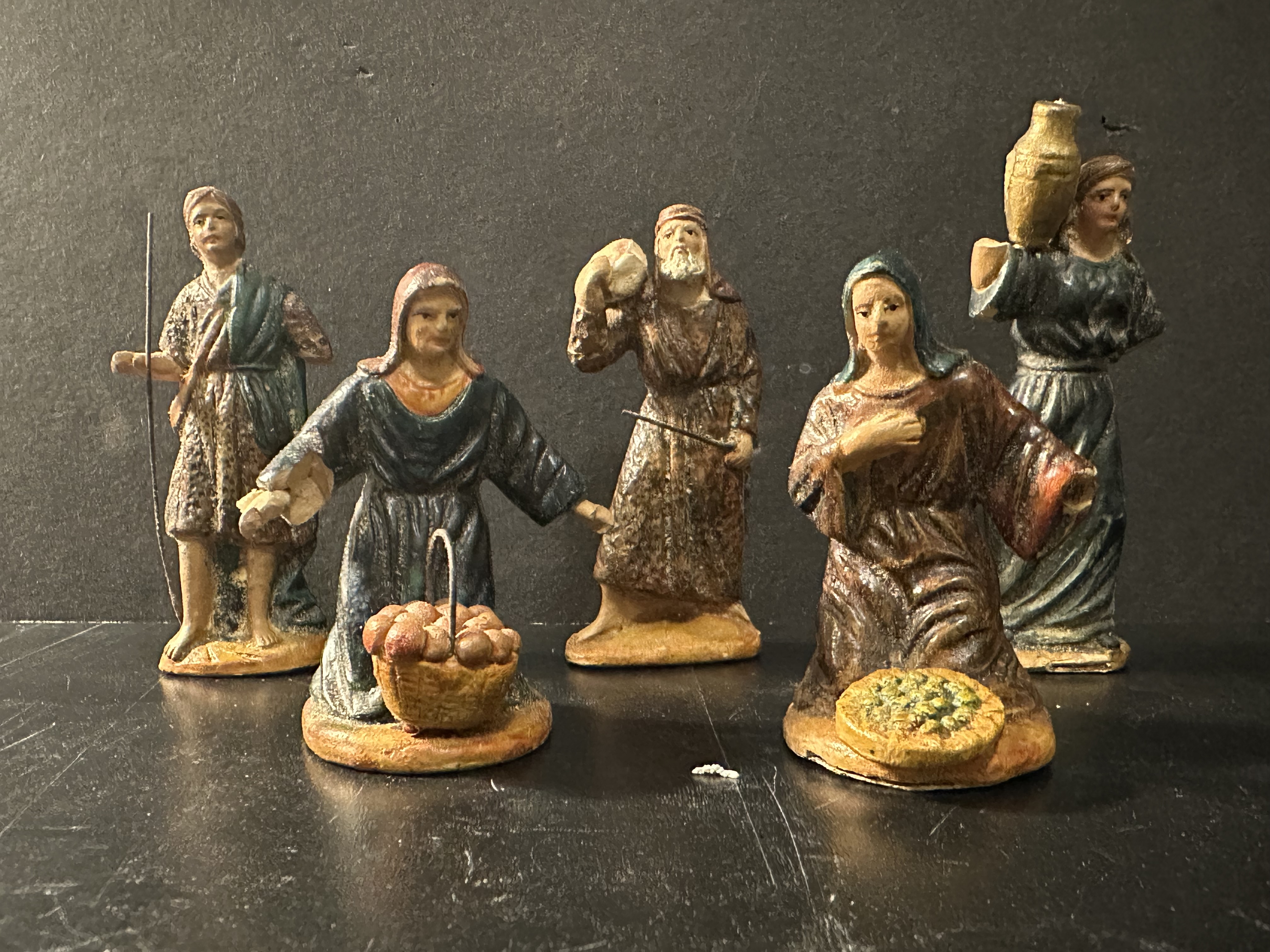 Mientras se va acercando la fecha para empezar a esbozar el Belén Malkior 2024, hay un previo de revisión, ampliación y depuración de la colección... en eso que han aparecido las figuras de mi abuelo, que junto con el misterio que aporté hace unos años, están estas figuras de unos ocho centímetros, en yeso algunas (que no dejan de ser copias de Daniel, Pep de Nas...) y algunas en barro, de claro corte murciano... ahí os las comparto.