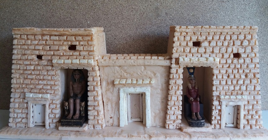 ....como tenía guardadas estas dos figuritas de 8.5 cms. me he entretenido estos días en buscarles un aposento y que mejor que... en un templo ejpcio.