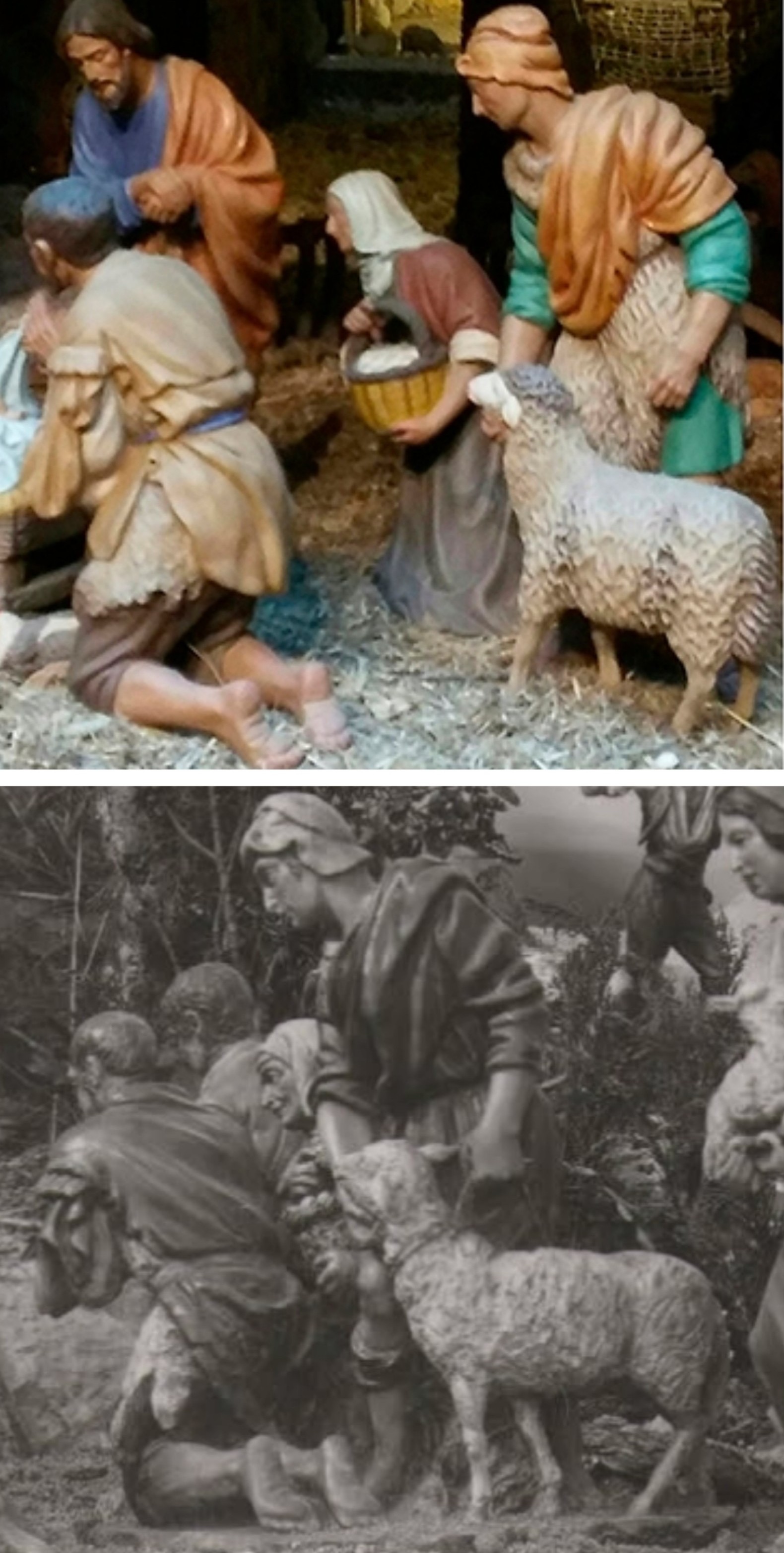 En esta ocasión no puedo estar de acuerdo Vicent, no son figuras de Martí, como decía en el anterior post es claramente una interpretación de la adoración de los pastores de Murillo de Buendía(interesante descubrimiento en mi opinión) con las demás figuras de la misma mano del autor formando un belén popular, además si hacemos una comparativa se ven las notables diferencias, lo principal en el movimiento corporal o postural, posición de miembros, rostros y manos(por ejemplo la anciana con cesta de huevos es palpable que son distintas), pliegues/vestimentas, pátina, hasta el pastor con oveja tiene patillas y claramente el cordero no es Castells, y exagerando hasta en la planta hay de los pies🤗hay diferencias no es la mano de Martí Castells...