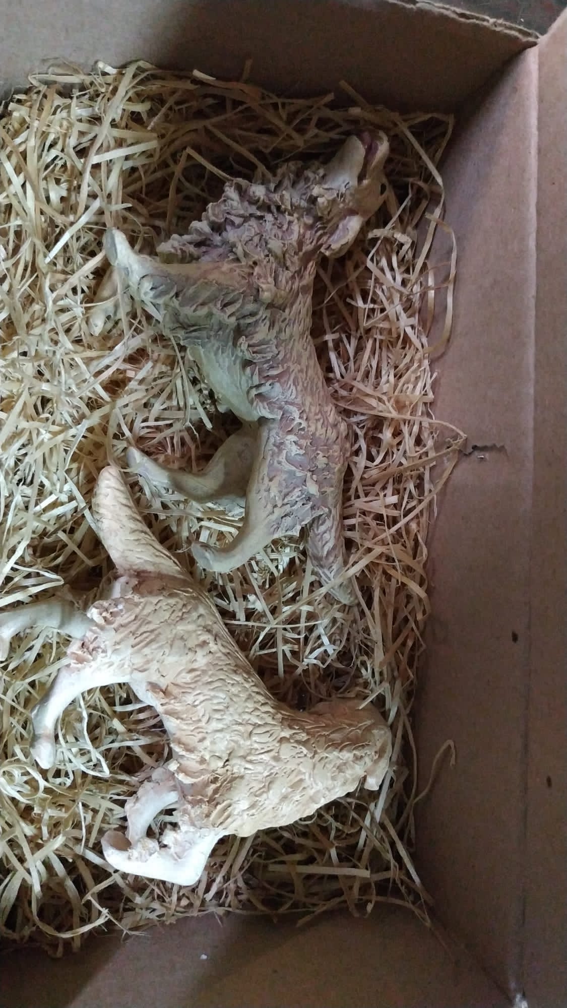 Ya están aquí... para mi gusto, preciosos... han llegado para quedarse. Uno para figuras de 21 y otro para figuras de 17, aunque como me dice un gran amigo podrían ser el macho y la hembra, ya que por lo visto en esta raza de perros la hembra es algo más pequeña que el macho. Aún no tienen nombre... en alguna historia del Belén Malkior 2021 os los revelaré.