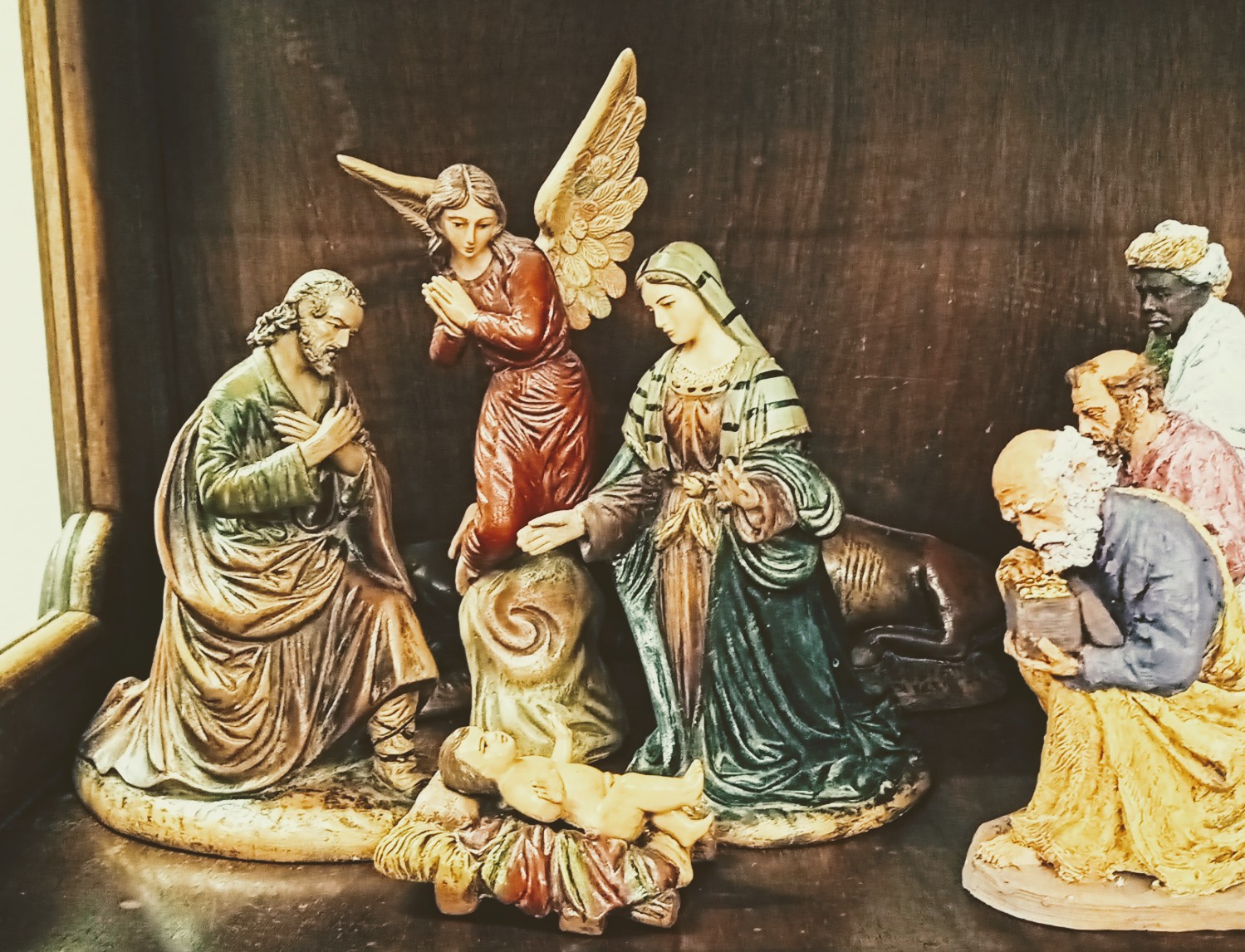 Epifanía de vitrina con la adoración de Reyes, ¡maravilloso contraste!...