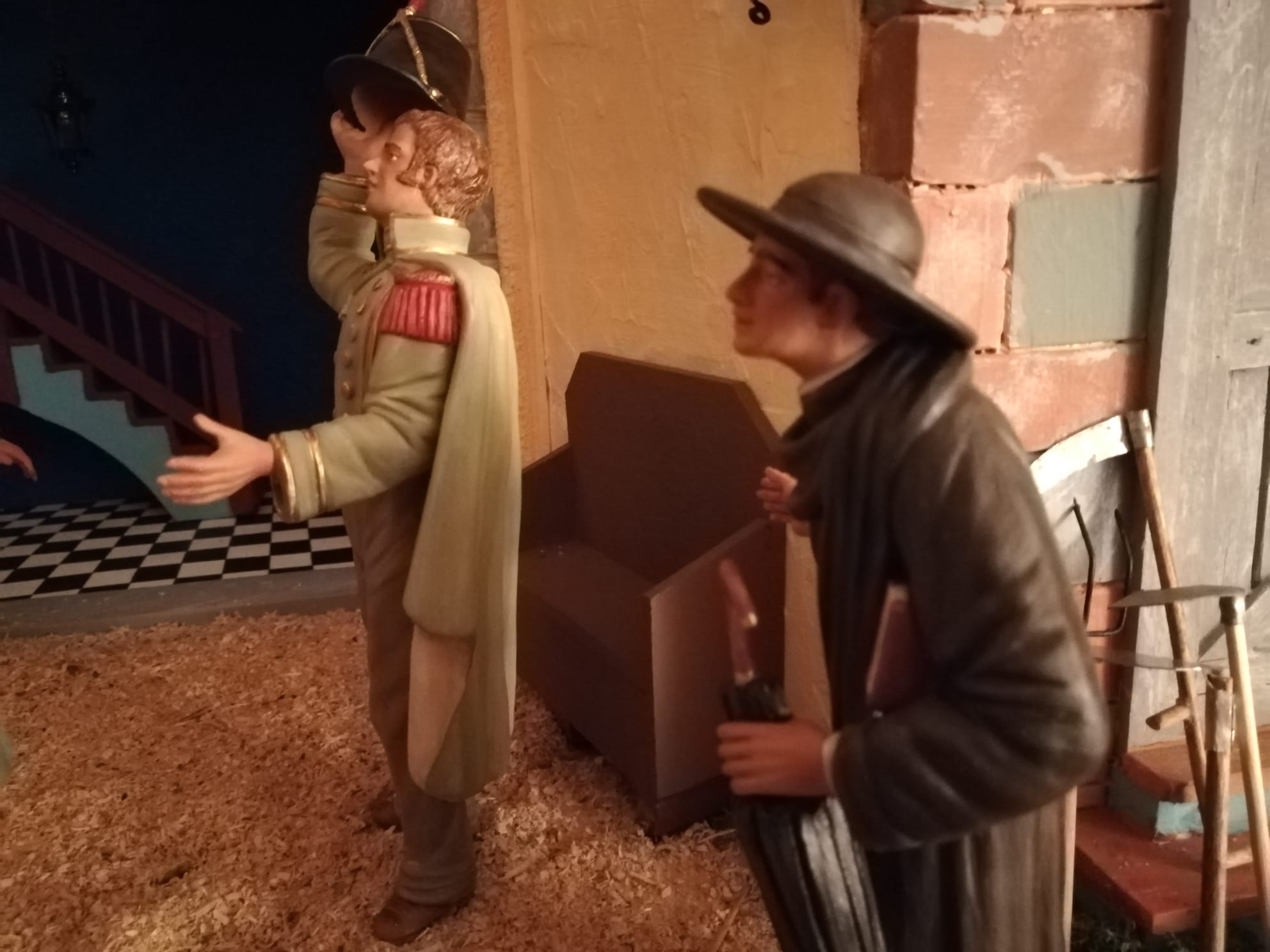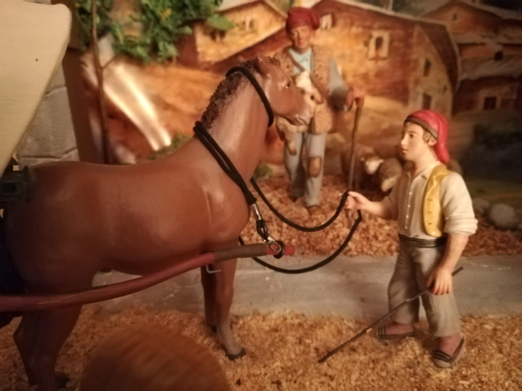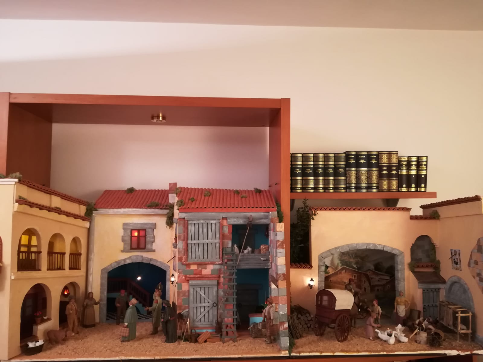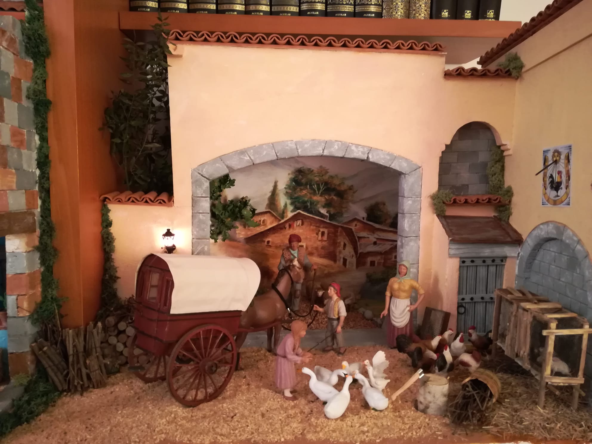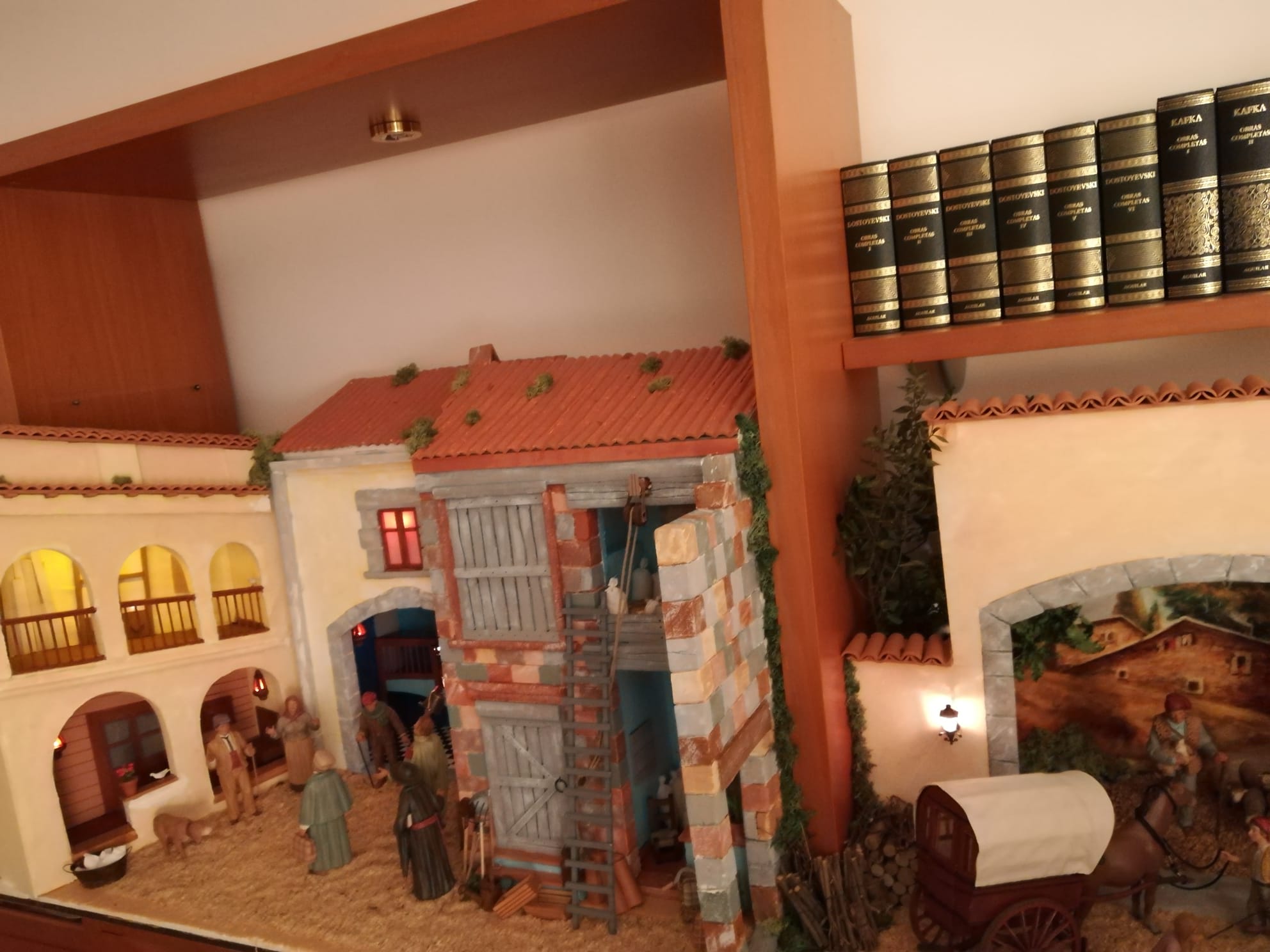 Bonita tradición y que tengas muy pensada tu colección con esas magnificas figuras hechas a fuego lento...es un Belén muy 'apuntado' como dice Hernán interesante la integración en el mobiliario y aún mas la introducción de la perspectiva con la pintura del conjunto de masías y el camino en continuidad con la escena muy conseguida y efectiva.