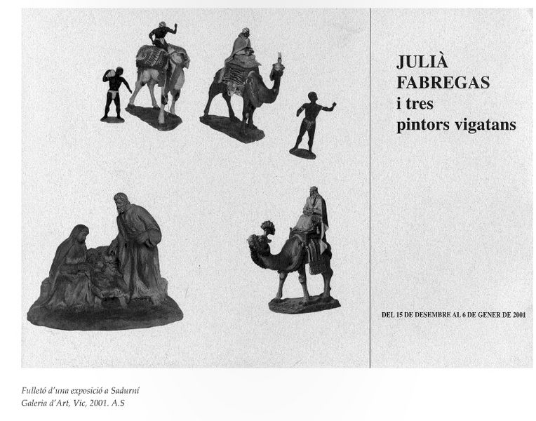 Intentaré adjuntar alguna fotografia de una cabalgata de Julià Fàbregas que en su día me ofrecieron y que se escapan, por lo que veo, del registro habitual del artista. Están policromadas, faltaría saber si fue él mismo quién las coloreo.