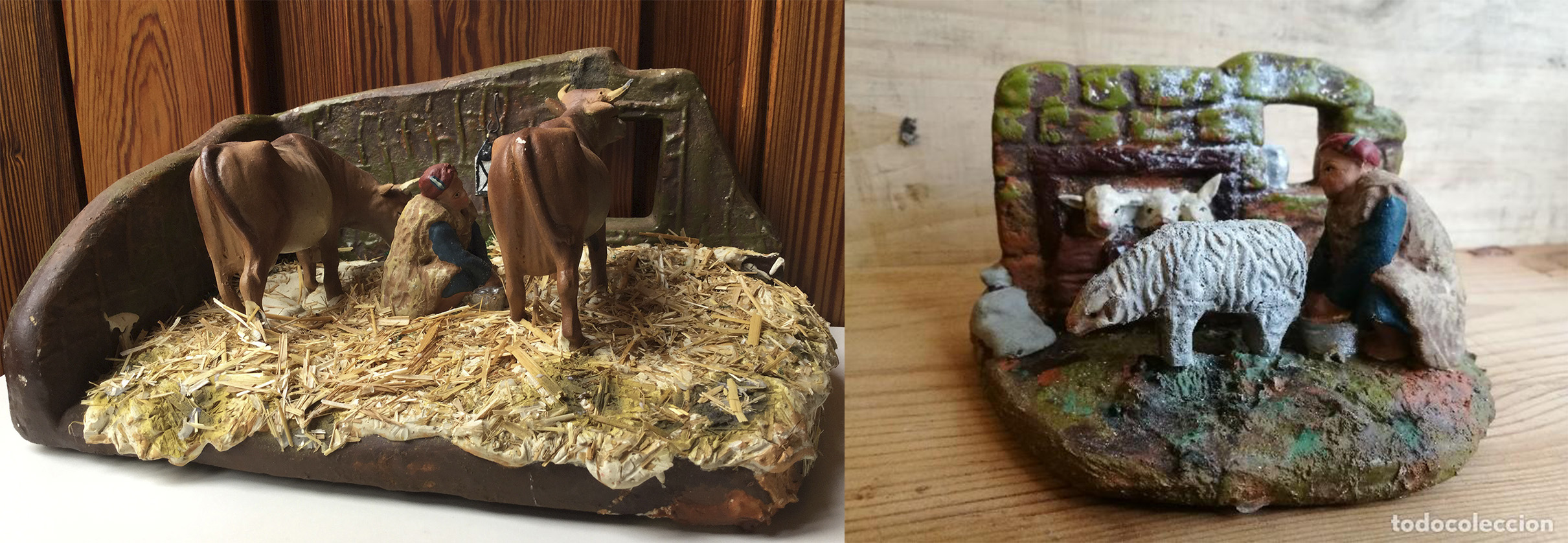 Hasta hace bien poco, 3 ó 4 años, solamente existía en Lleida una tienda de artículos religiosos que era la Librería Fregola, éste era un comercio de los más antiguos de la ciudad en la que tenían todo tipo de figuras y material para belenes, últimamente tenían mucho surtido de figuras murcianas pero también podías comprar figuras de Olot per encargo (las de El Arte Cristiano). Es posible que años atrás dispusieran de figuras de muchos otros artistas. Muchas de las figuras que yo tengo las había comprado mi padre en esta librería. Los reyes magos que he puesto en este hilo están comprados allí (creo que los debió comprar mi padre sobre los años 60) también tengo varias ovejas de barro iguales a las de la composición que has puesto tú (y curiosamente algunas se han roto por el mismo sitio, je je). No sé si son de Castells o no. Tengo también la escena de buscando posada que es una copia en yeso rosado de la de Castells (aunque nos la vendieron como un Castells original, me he dado cuenta desde que consulto este foro que deben ser una copia porque las originales Castells son de barro y las mías no) ésta la compramos también allí, creo que en los años ochenta, yo lo recuerdo porque solía ir con mi padre a escoger figuras. Es una pena porque esta librería cerró hace 3 ó 4 años y era una de los comercios emblemáticos de la ciudad y de lo más antiguos.