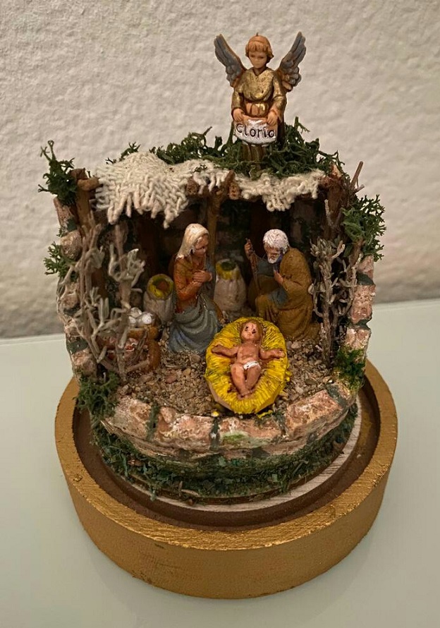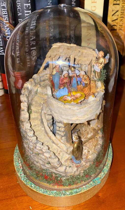 ..el otro día me regalaron dos fanales,...uno tiene una altura de 10 cms. y el otro de 18. Como tenía figuritas de Landi de 3.5 cms. he aprovechado para hacer un belencito y meterlo dentro. La foto al natural..normal, pero con el fanal colocado..siempre sale algún brillo. Ahora me estoy preparando el segundo. Adjunto la foto.