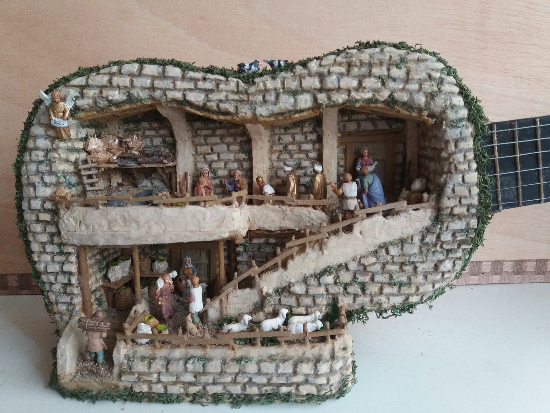 ..hace unos años realicé un belencito dentro de una guitarra que le habían regalado a mi nieto..pero al verla hoy...encontré alguno fallos.. a si que he vuelto hacerla de nuevo. Os enseño el proceso en fotos.