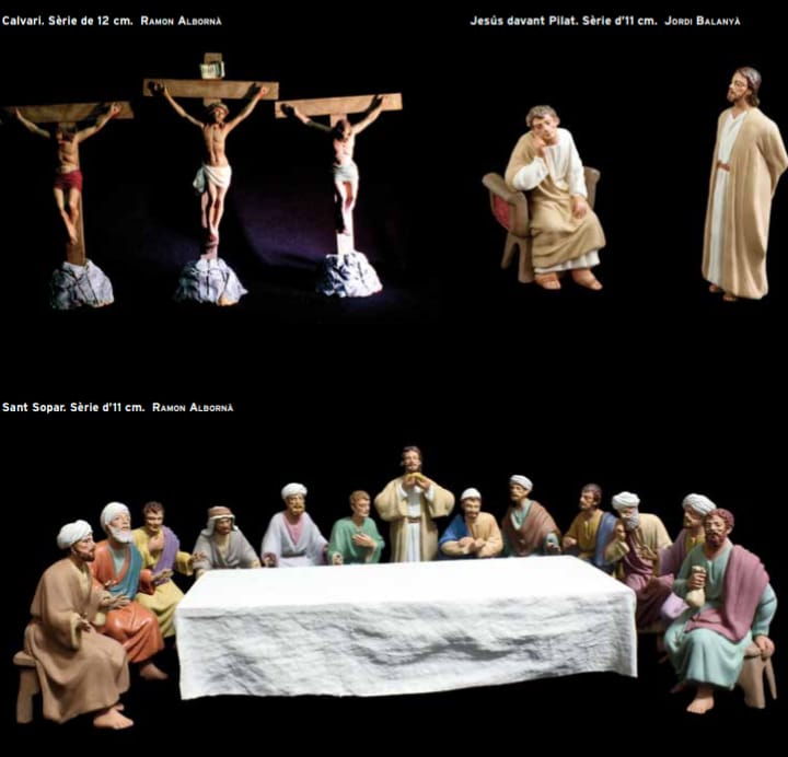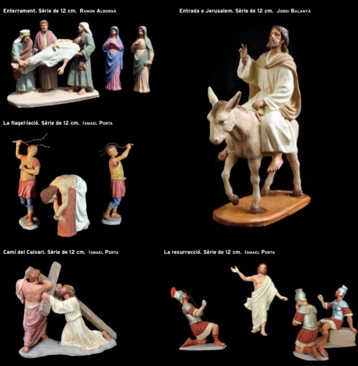 Imágenes de figuras de La Pasión de G.Castells sacadas del libro (pdf) de Ramon Albornà i Rovira Ismael Porta i Balanyà, Germans Castells, art i figures per al pesebre , Barcelona, Generalitat de Catalunya, Departament de Cultura, Direcció General de Cultura Popular i Associacionisme Cultural, 2018.