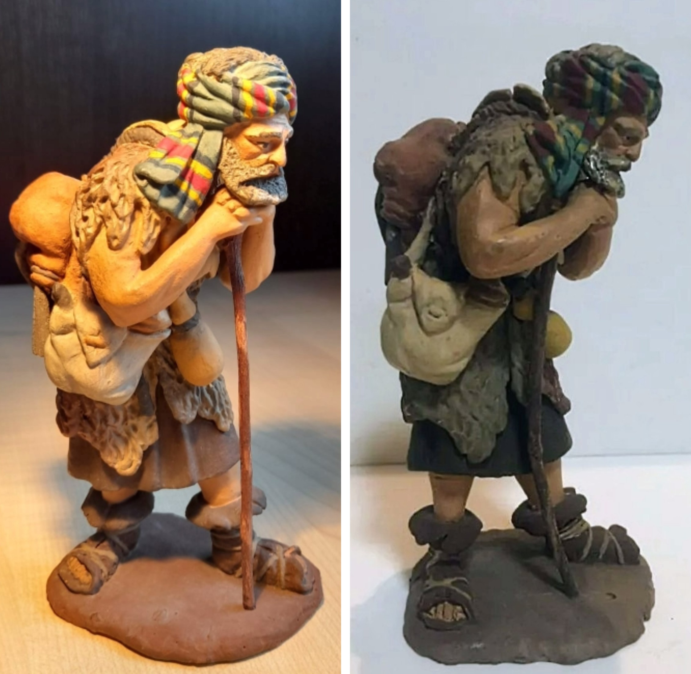 Comparativa de figuras del mismo molde con policromía y pátina diferente...