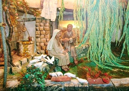 La escena del diorama de los esposales de Solius también es muy bonita y, aquí dos versiones una parecida al montaje de Fra Gisbert y la otra con el sumo sacerdote con la placa pectoral del juicio,