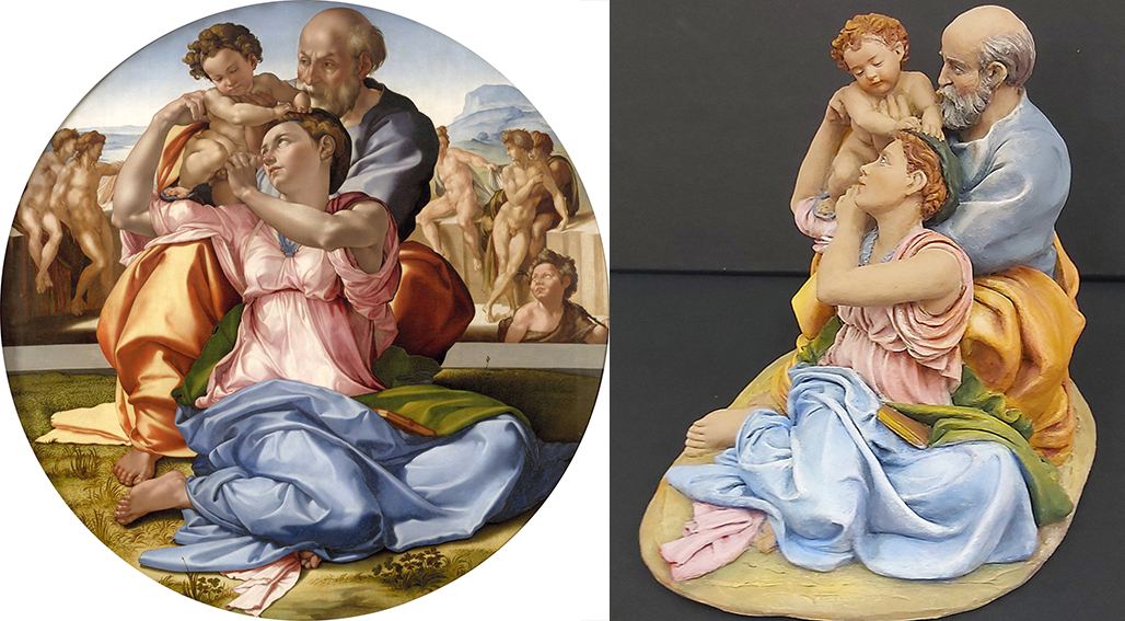 Otro caso parecido es el del taller De Francesco con la versión libre de la pintura La canción de los ángeles o también llamada La Virgen con los ángeles del academicista francés William-Adolphe Bouguereau(1825-1905) en el J. Paul Getty Museum, Los Ángeles (Estados Unidos).