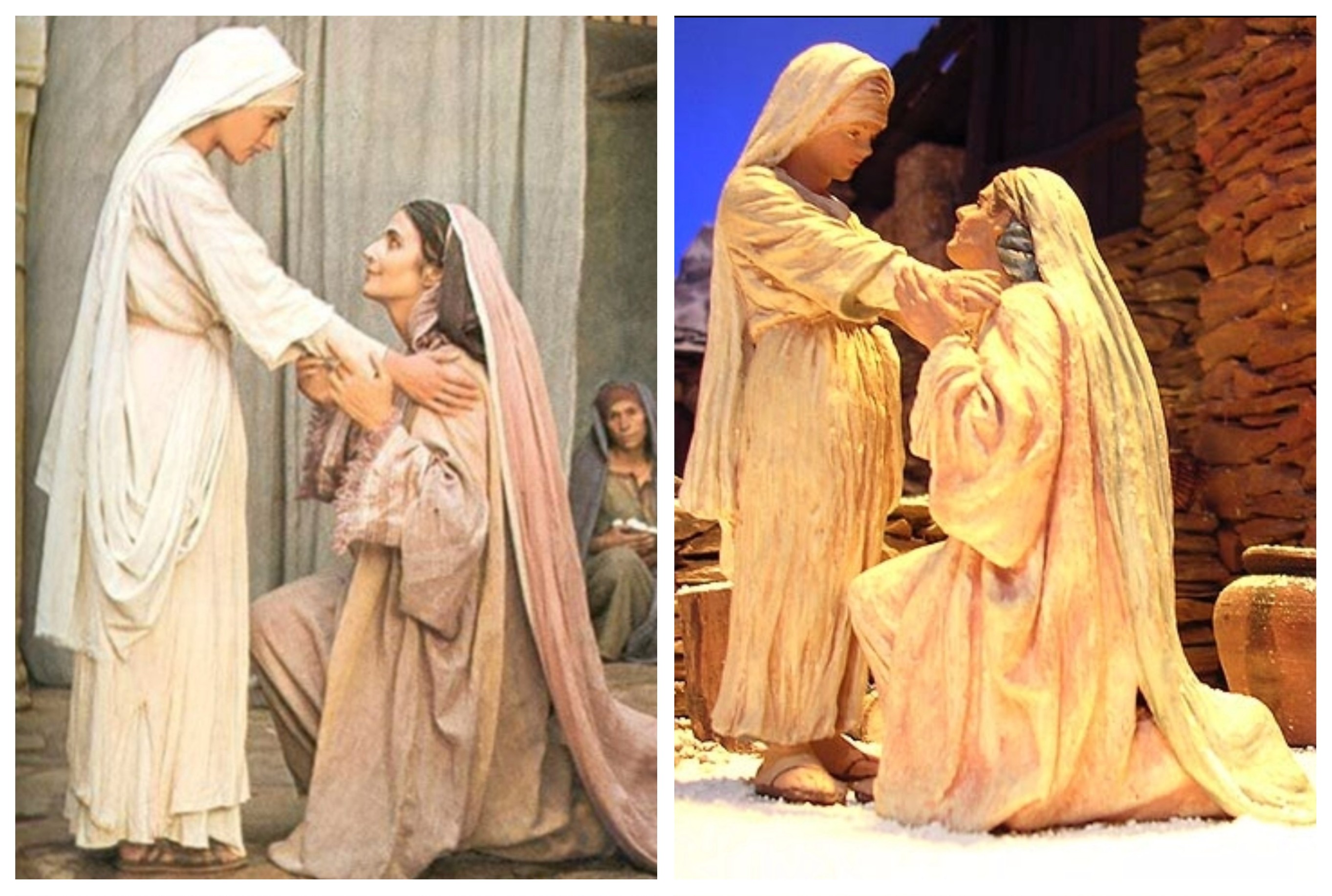 Figuras de la Virgen y Sta. Isabel de Daniel J. Pons encargo basado en la escena de la Visitación del fotograma de la miniserie Jesús de Nazaret de Zefirelli.