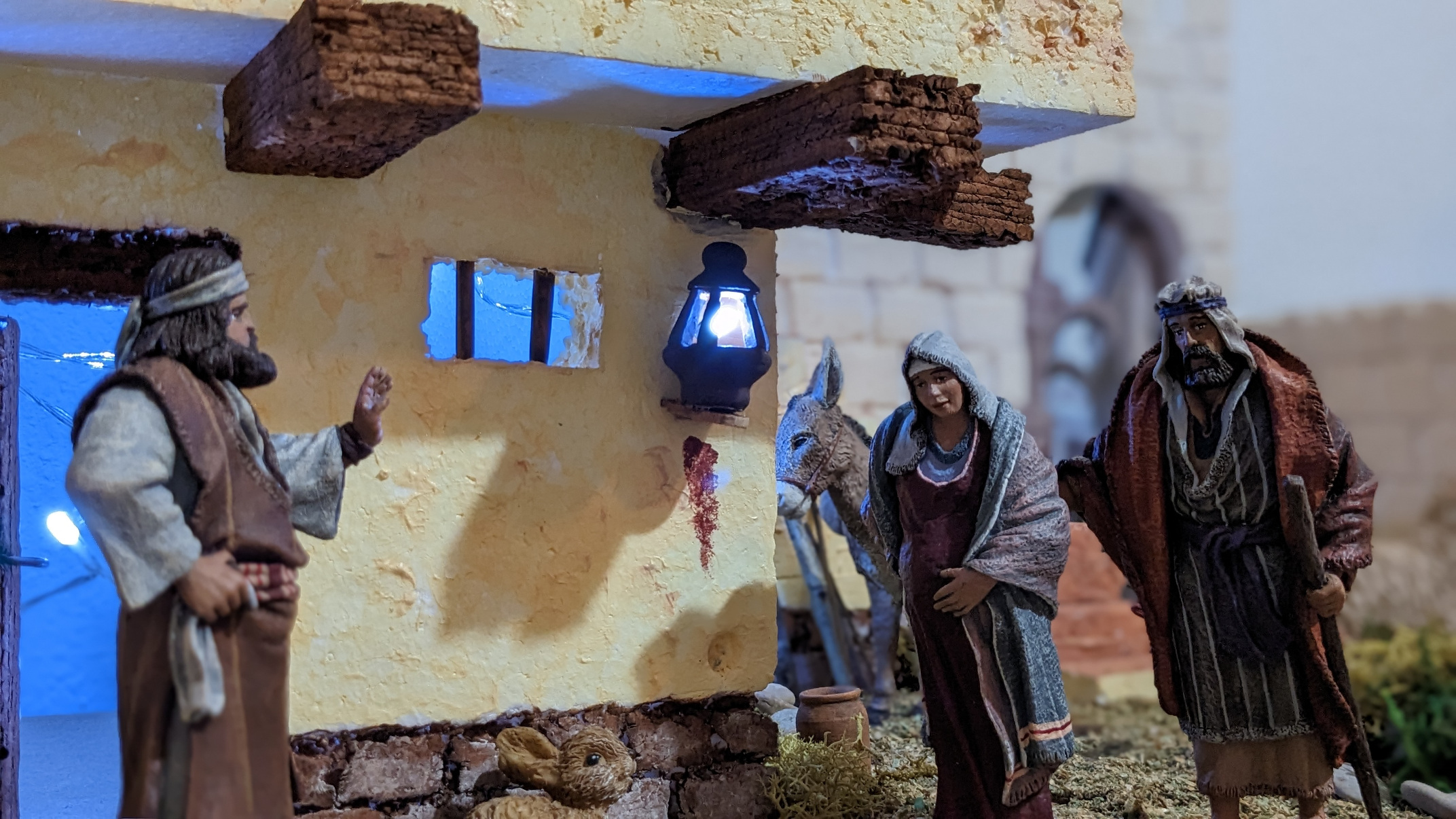 Pasaje "buscando posada", 3 figuras de 12cm: posadero (uso también como mercader), San José (también utilizable como pastor) y Virgen embarazada (como aldeana). Precio: 235