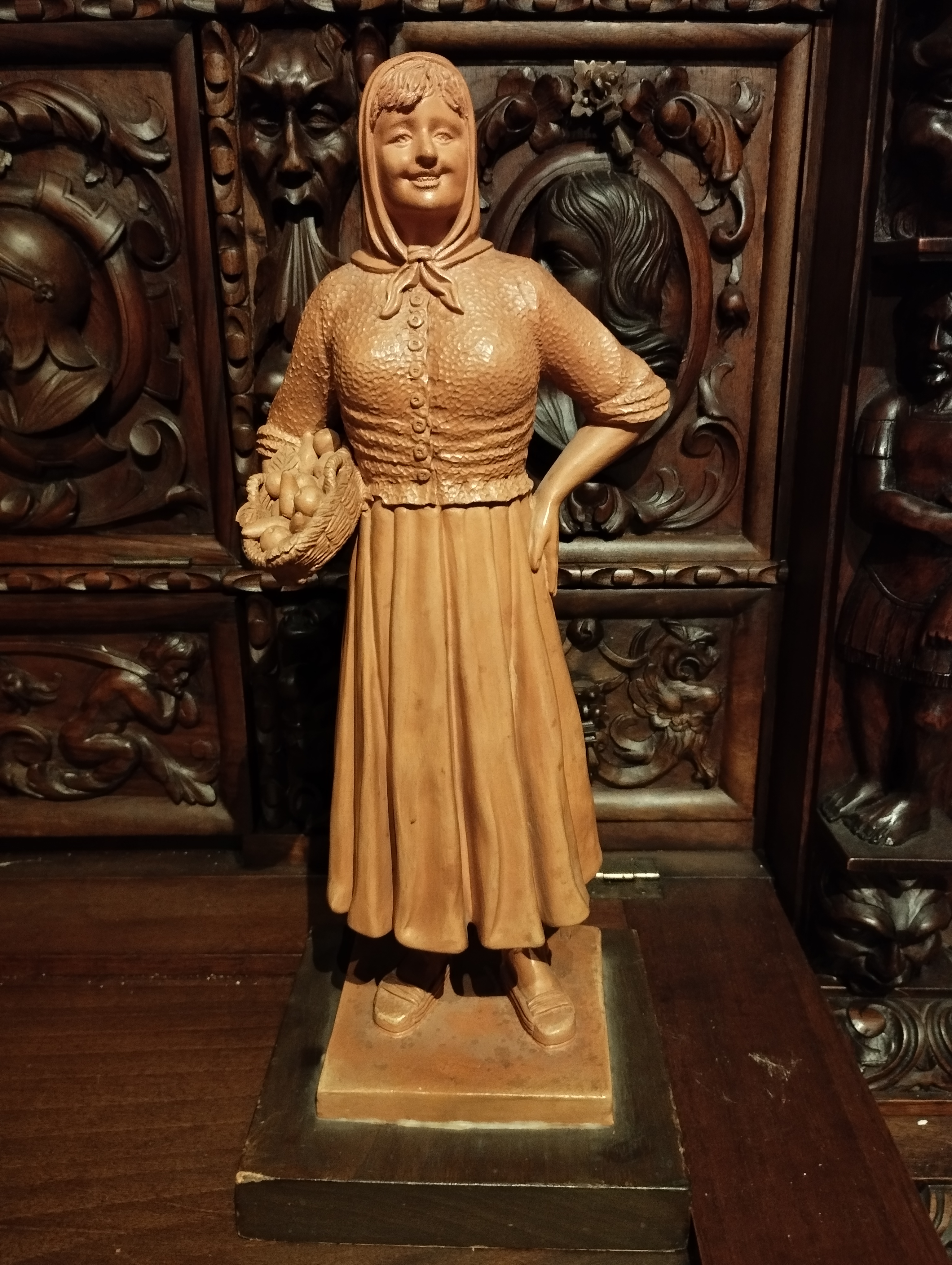 IMG_20250604_231745.jpg (3637KB - 52 descargas)Enhorabuena Gustavo por la adquisición de esta figura. Se trata de una campesina de gran tamaño (más de 30 cm), muy bonita, detallada y decorativa. Martí realizó grupos regionales y escenas populares por encargo, por lo que esta pieza podría formar parte de alguna colección. Es un personaje que recuerda a los presentes en dioramas con motivos navideños vernáculos, como el caga tió o el tió de Nadal, entre otros.