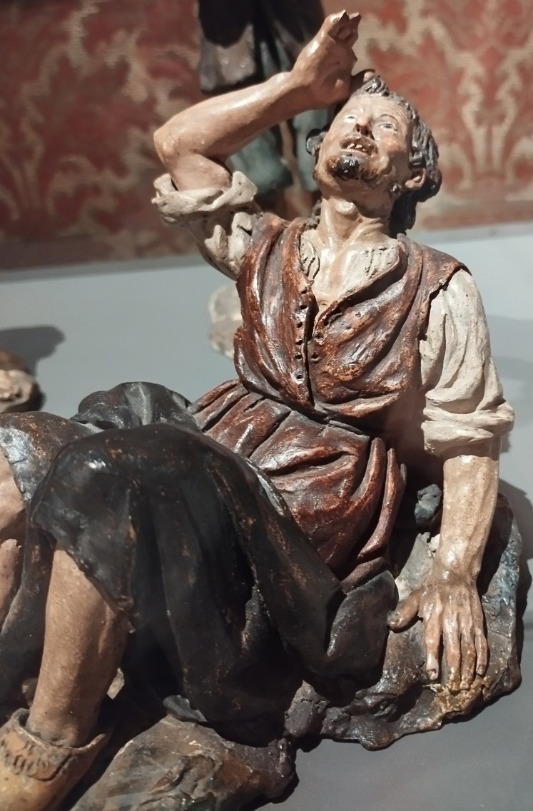 También intenté hacer la comparativa con las figuras del Maestro de la colección Gelabert , aunque aquí claramente se trata de piezas de un formato mayor, lo que complica la traslación del detalle del modelado a una escala más pequeña. La diferencia en proporción es significativa, ya que las figuras de esta colección son más del doble del tamaño de las que estoy estudiando, lo que implica que ciertos rasgos estilísticos y de acabado no se manifiestan con la misma precisión o sutileza.