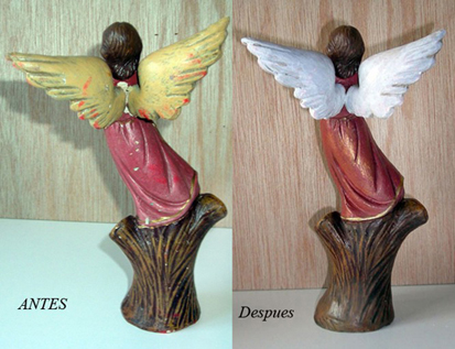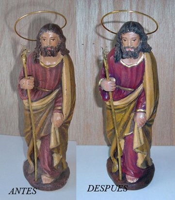 Una vez me pidieron "con la boca pequeña" retocar algunos pequeños roces en una imagen de Salzillo ¡ahi es nada! y les dije que ni loco, pero a estas menudencias de escayola o figuras de belen de barro y serie, no tengo incombeniente en hacerlo, asi que animo y poner vuestros arreglitos,abrazos para todos.